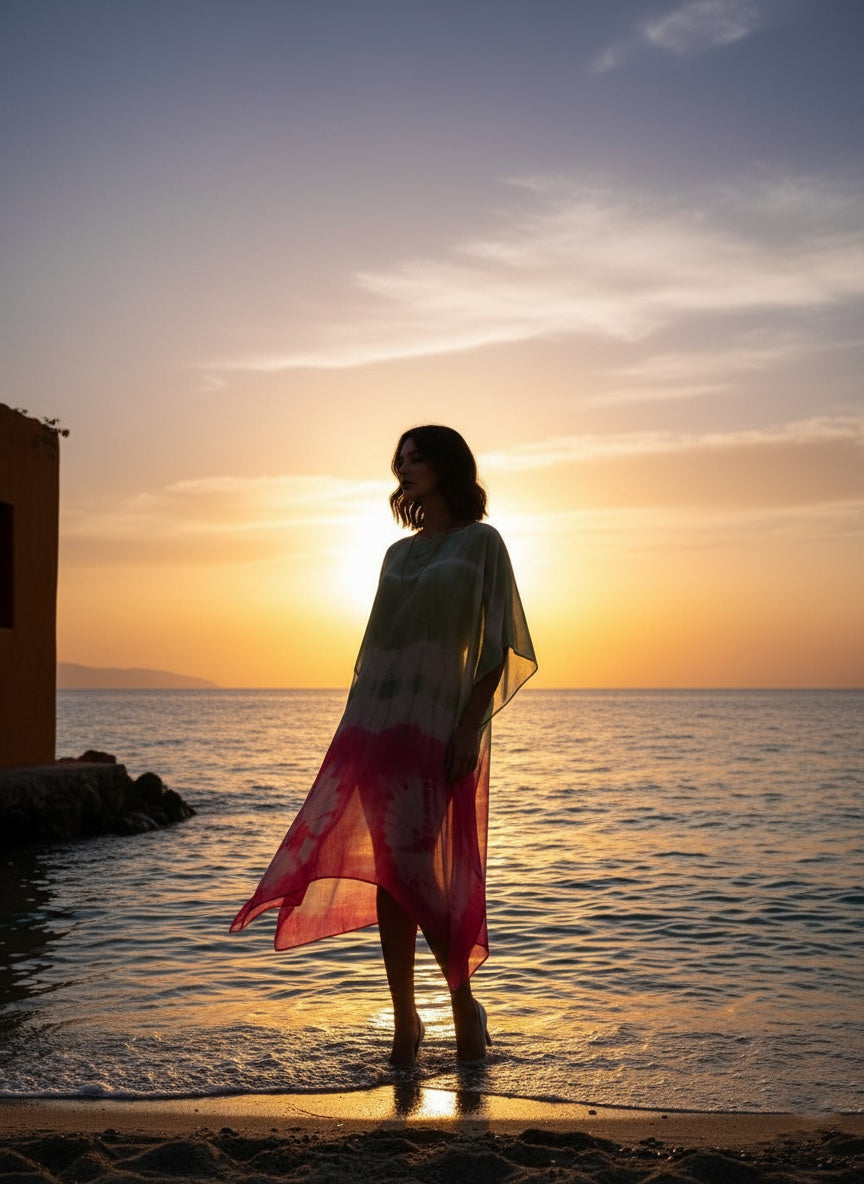 Immerse yourself in the art of tie-and-dye, a technique where fabric is intricately folded, pleated, tied, or stitched to achieve diverse designs. In India, this craft manifests as leheriya, shibori, and bandhani, each telling a unique story. Elevate your style effortlessly with our hand-dyed kaftan kurtas, seamlessly blending handcrafting allure with a relaxed fit. Perfect for any occasion, embrace the simplicity of luxurious fashion and the timeless elegance of meticulous craftsmanship.