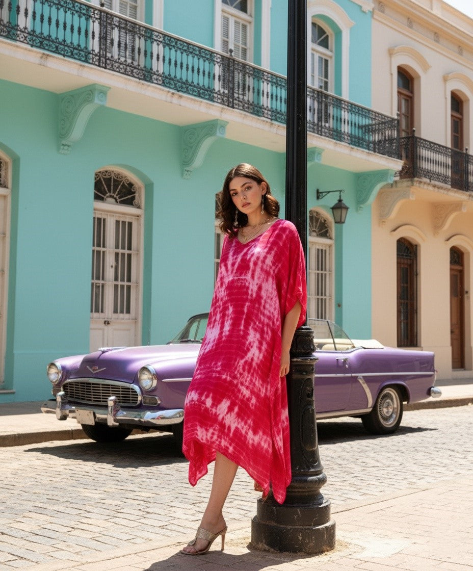 Rayon Crepe Tie Dye Pink Kaftan Kurta (W1123)
