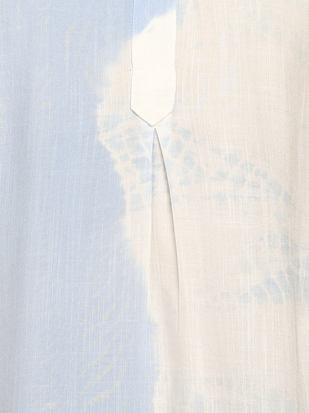 Women Casual Rayon Slub Tie & Dye Mandarin Short Sleeves Regular Fit Top (W1700)
