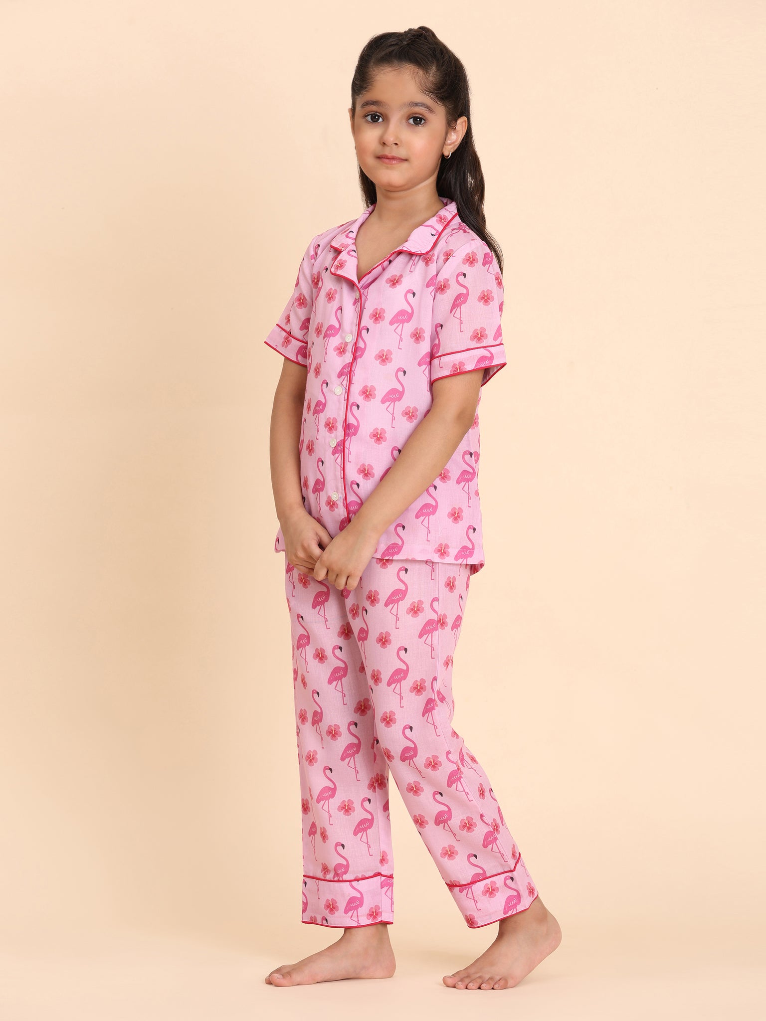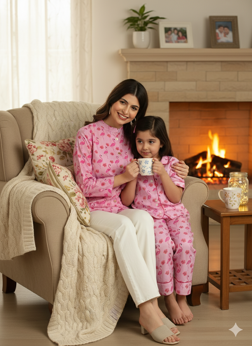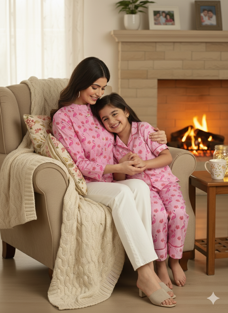 Women Printed Shirt With Matching Kids Night Suit Set Mother Daughter Combo (COMBOMD9029)