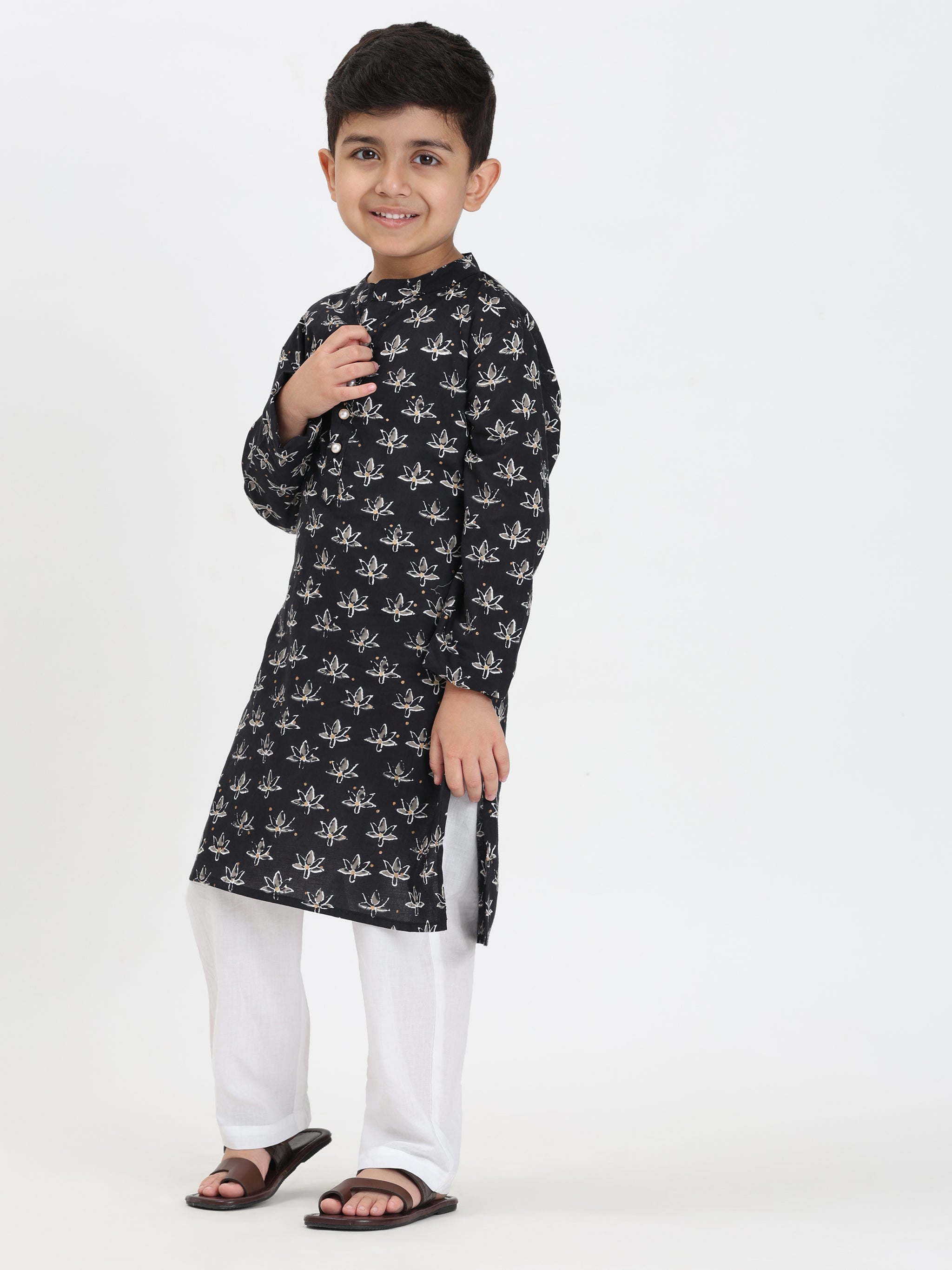Classic boys cotton kurta pyjama set, designed for comfort and style. This traditional outfit features a soft, breathable kurta paired with matching pyjama pants, perfect for festive occasions, family gatherings, or casual wear.