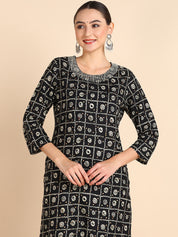 Women Embroidered Printed Rayon Straight Kurta (W1516)