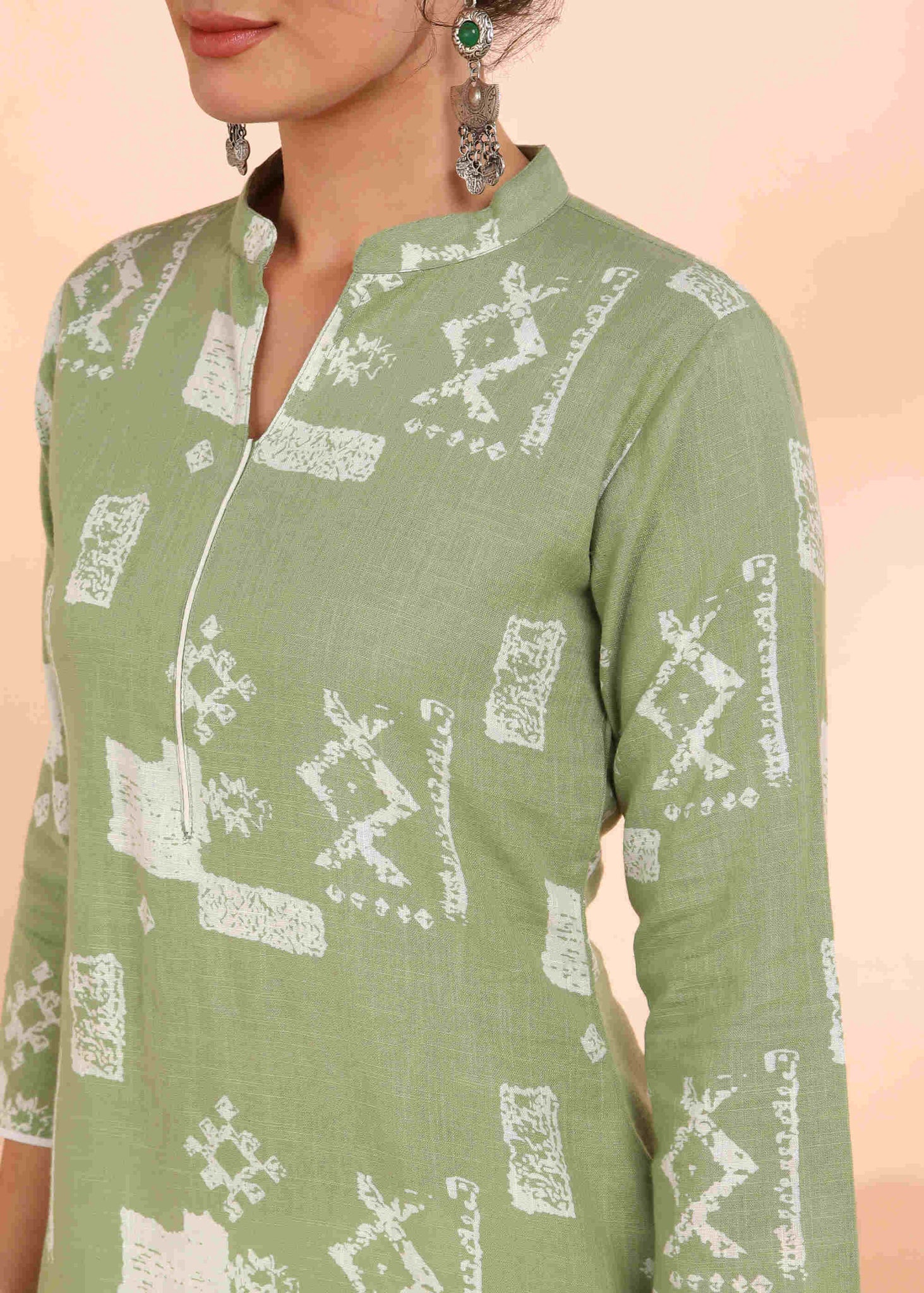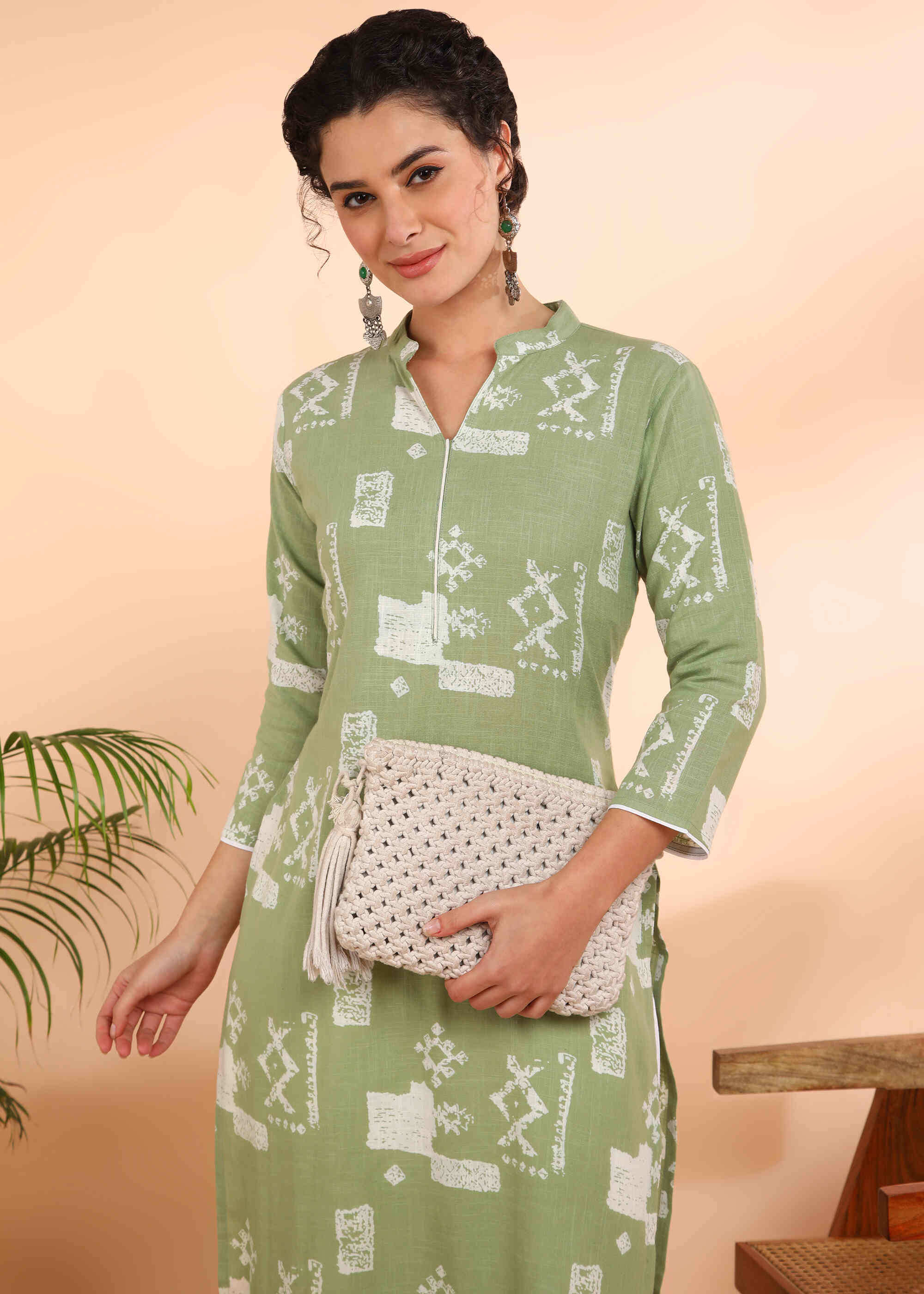 Elevate your everyday style with the Women Handmade Geometric Pure Cotton Straight Green Kurta. Made from 100% pure cotton, this kurta offers unmatched comfort, breathability, and softness, making it perfect for all-day wear. The modern geometric print adds a contemporary touch, making it an ideal choice for work, casual outings, or festive gatherings.