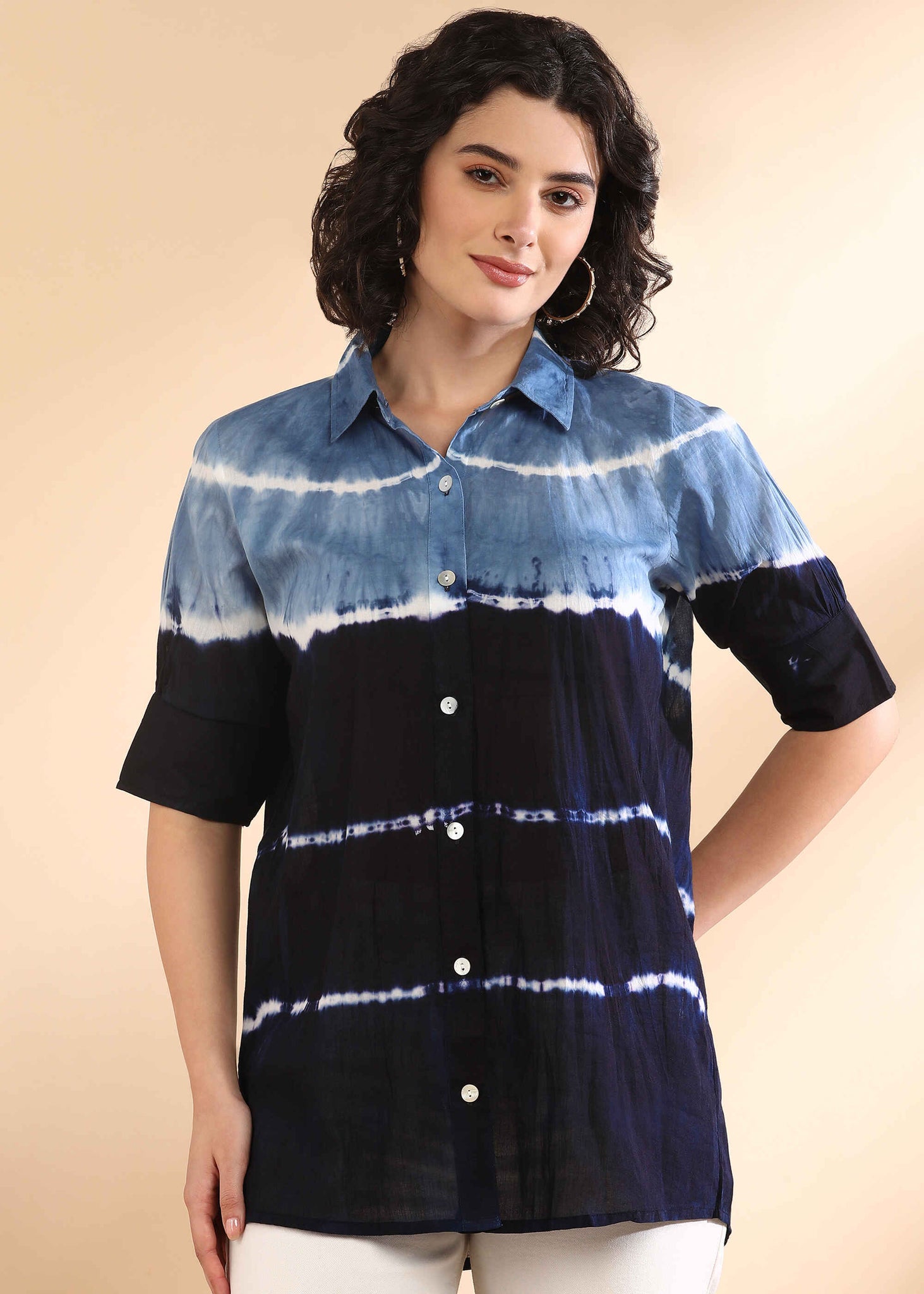The Women Handmade Tie-Dye Mulmul Blue Shirt blends comfort and style with its soft, breathable Mulmul fabric and trendy blue tie-dye design. Perfect for casual wear, this lightweight shirt offers a relaxed fit and effortless elegance. Pair it with jeans, shorts, or skirts for a chic, boho-inspired look. Elevate your wardrobe with this must-have women’s tie-dye shirt—ideal for everyday fashion.