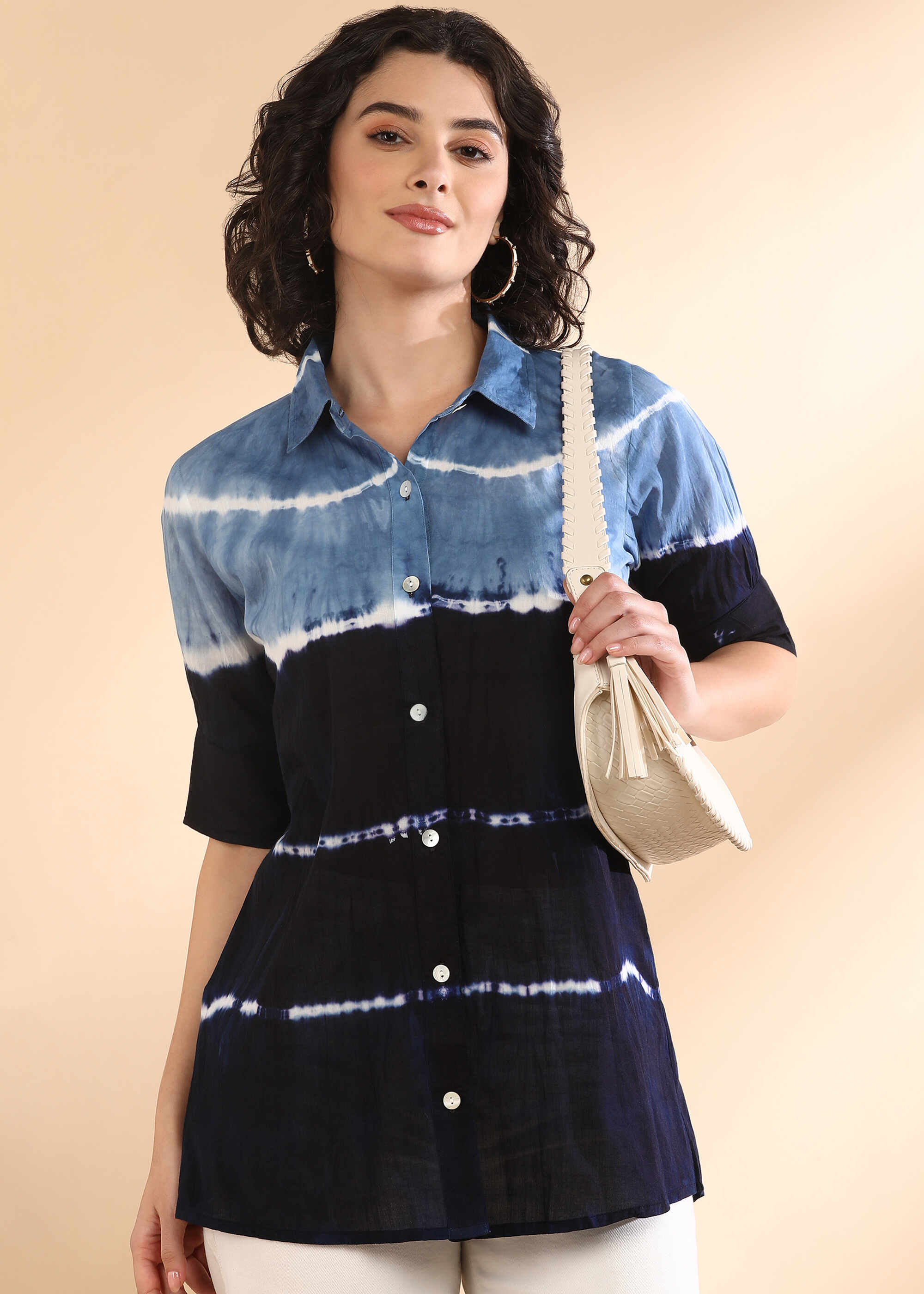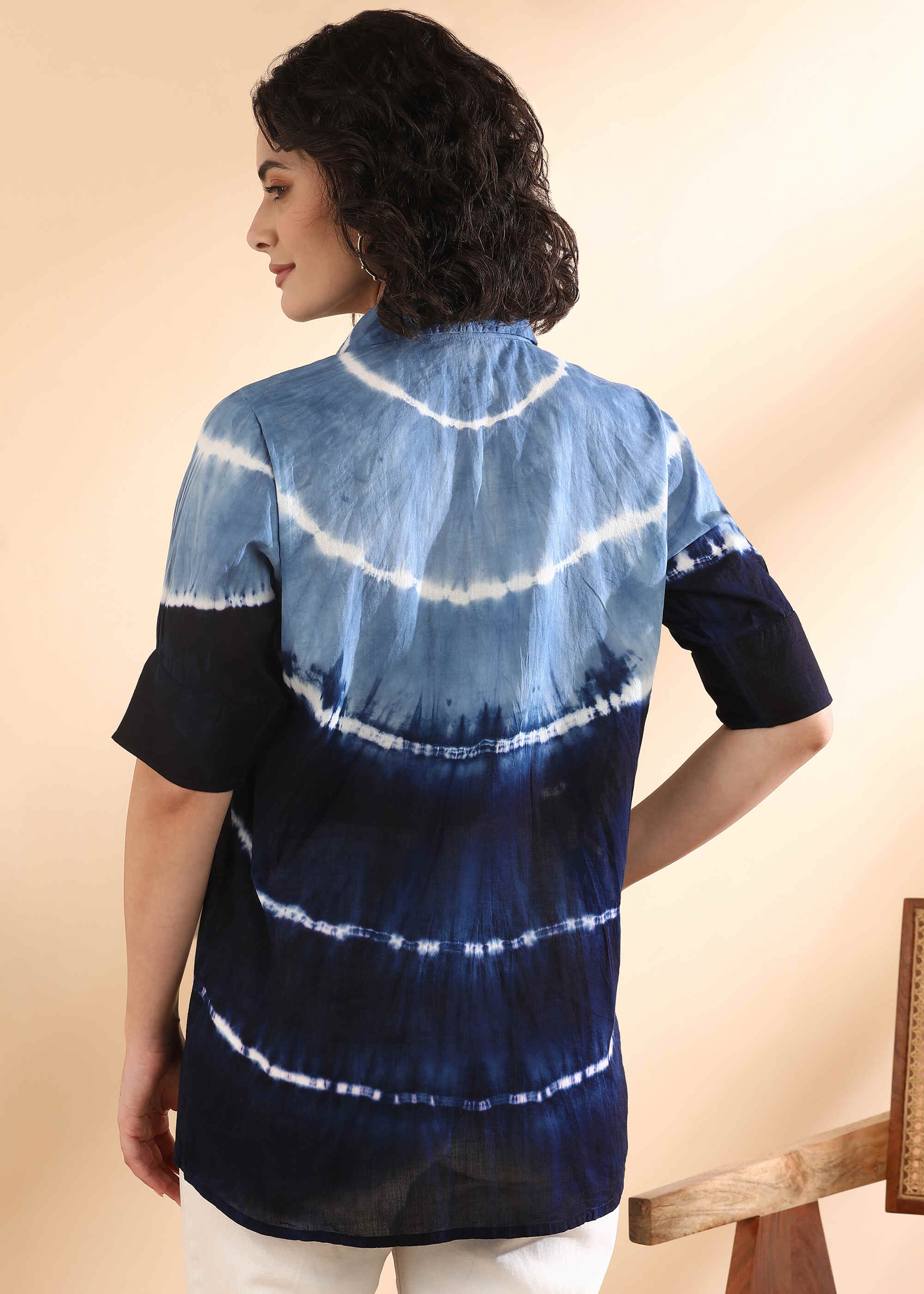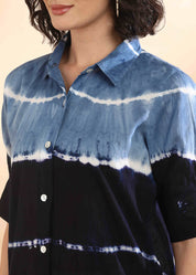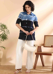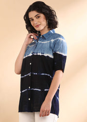 Women Handmade Tie-Dye Mulmul Blue Shirt (W1664)