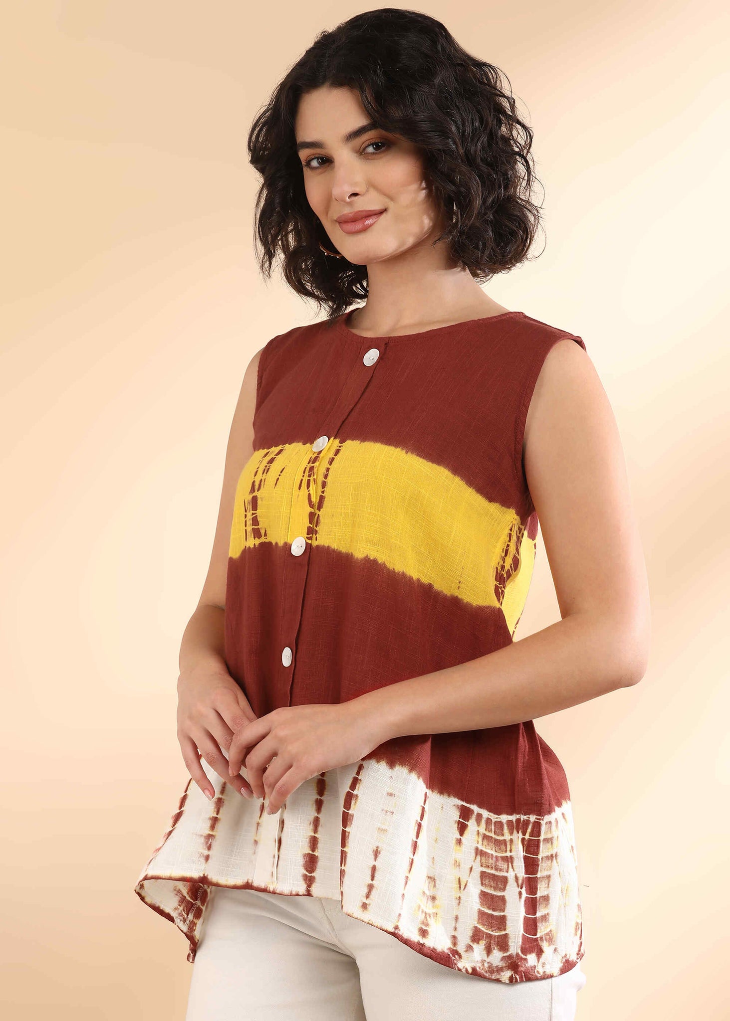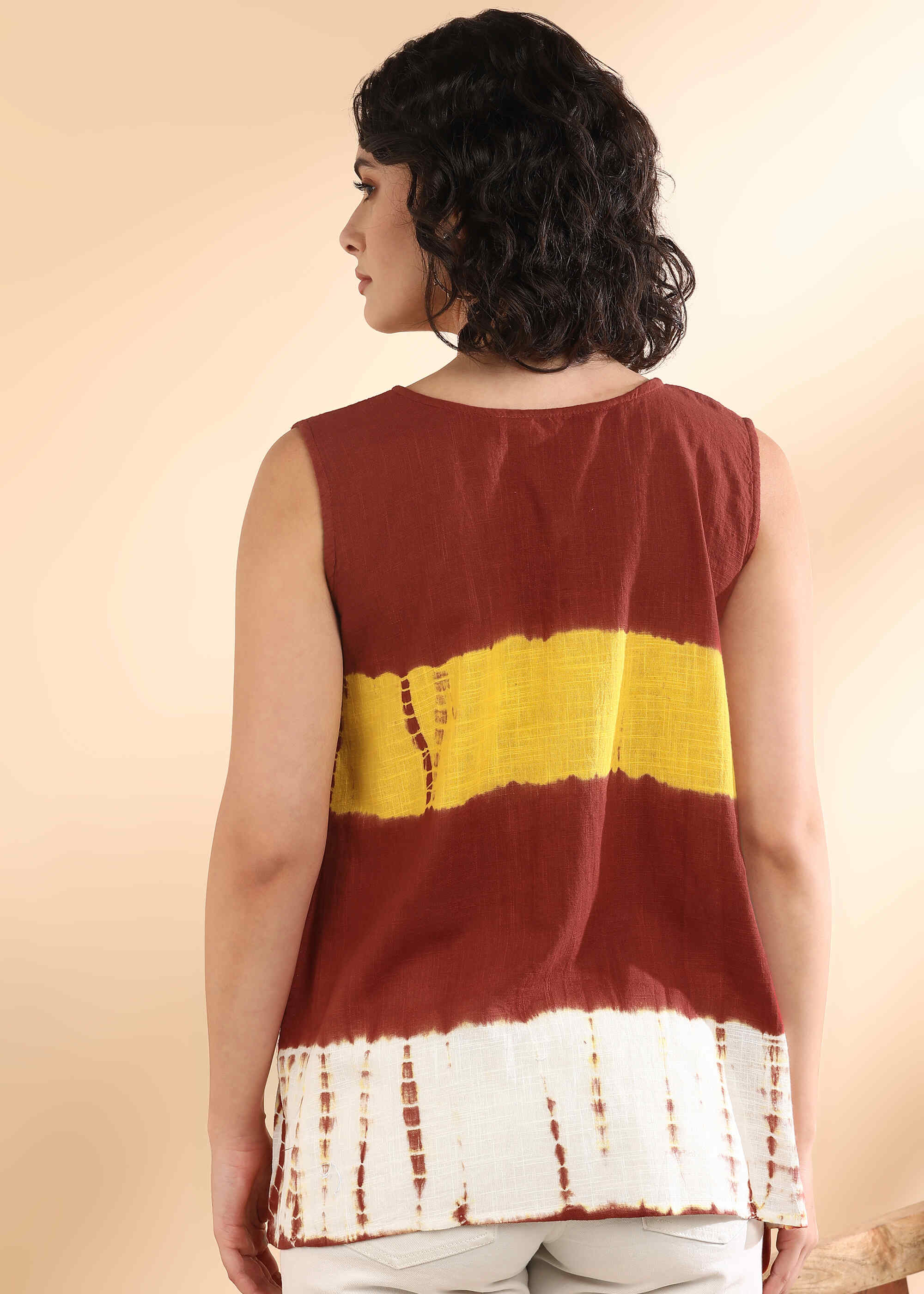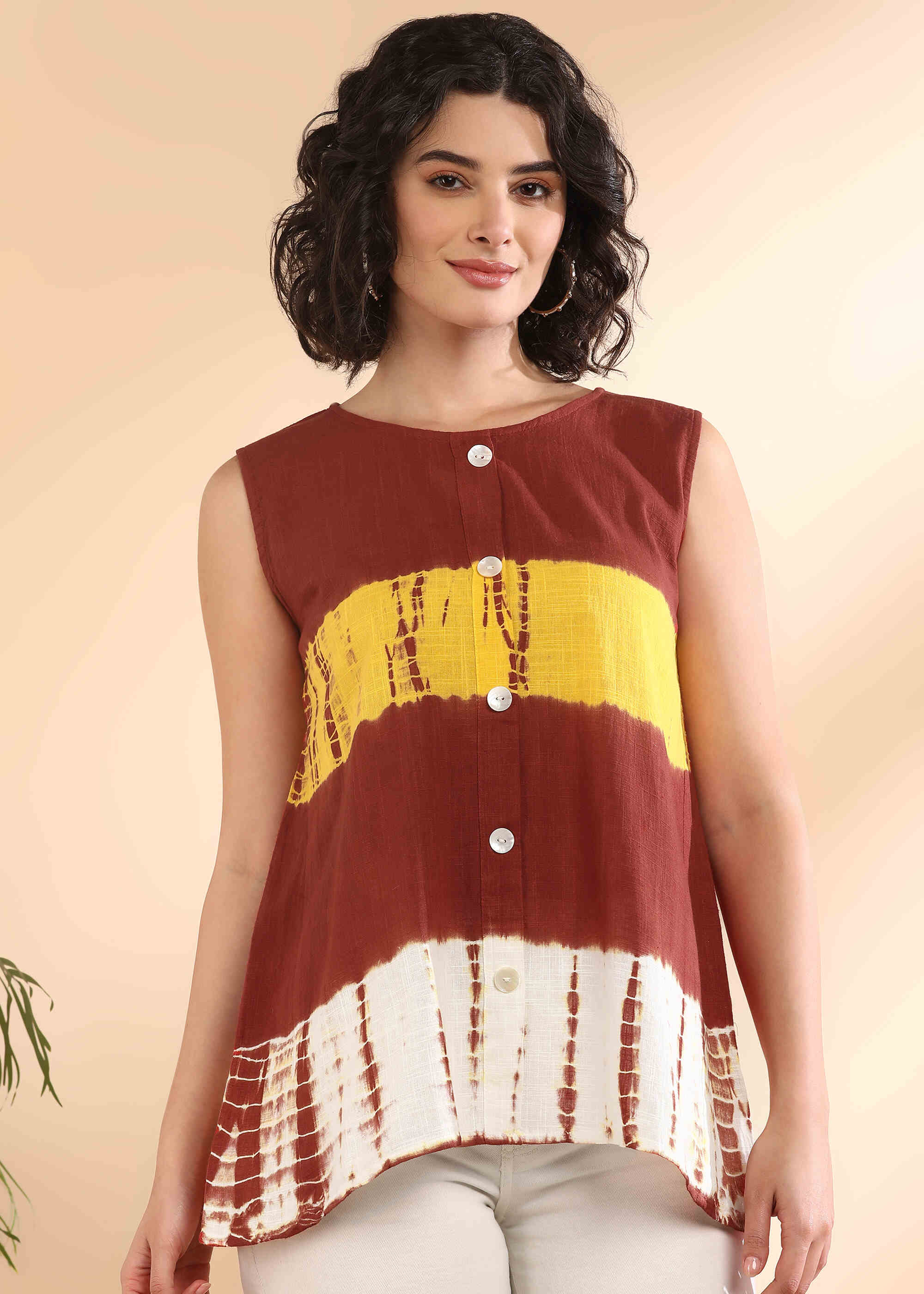 Women Handmade Tie-Dye Rayon Brown Top (W1656)