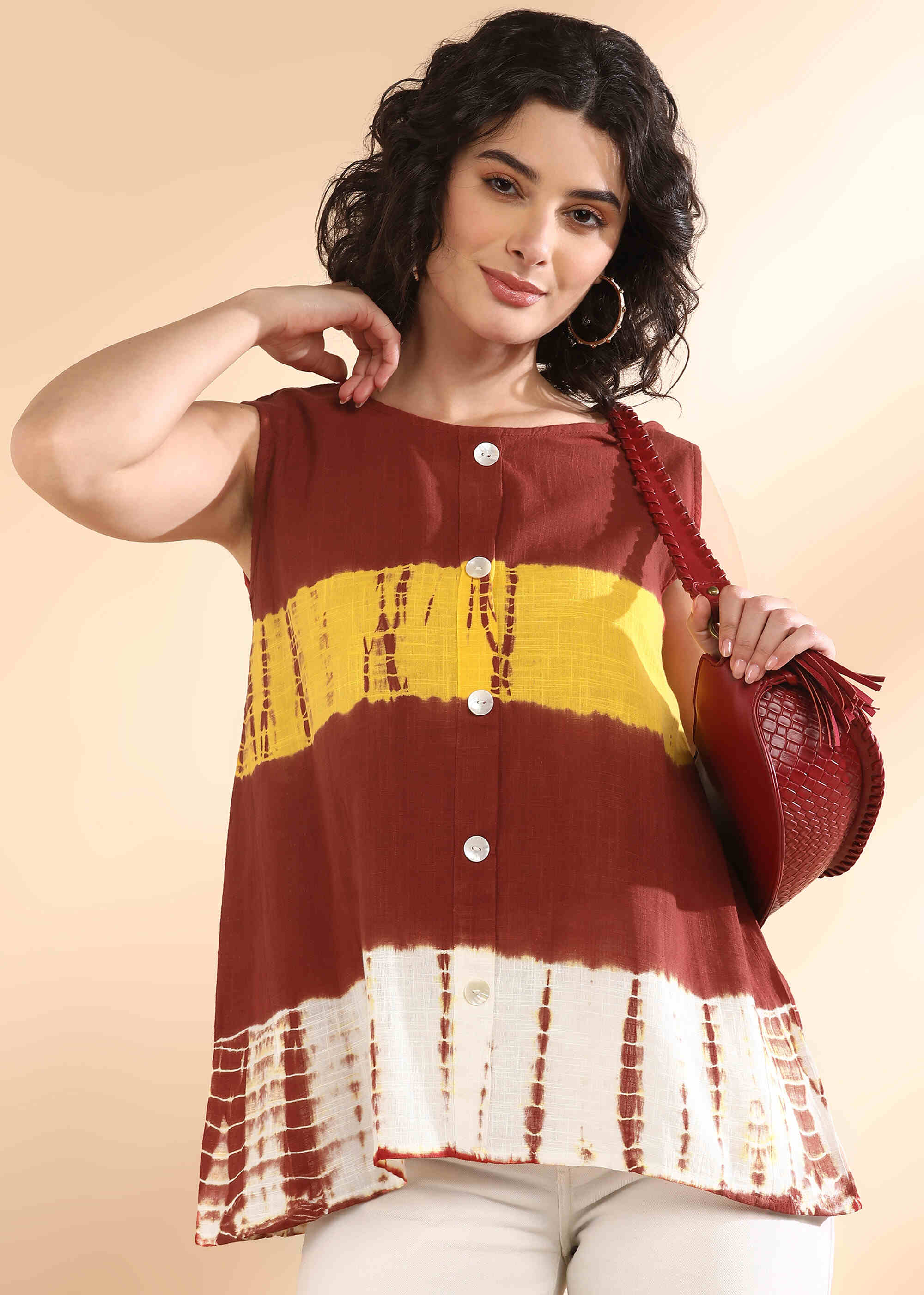 The Women Handmade Tie-Dye Rayon Brown Top blends comfort and style with its soft, breathable rayon fabric and trendy brown tie-dye design. Perfect for casual wear, this lightweight top offers a relaxed fit and effortless elegance. Pair it with jeans, shorts, or skirts for a chic, boho-inspired look. Elevate your wardrobe with this must-have women’s tie-dye shirt—ideal for everyday fashion.