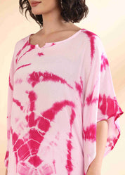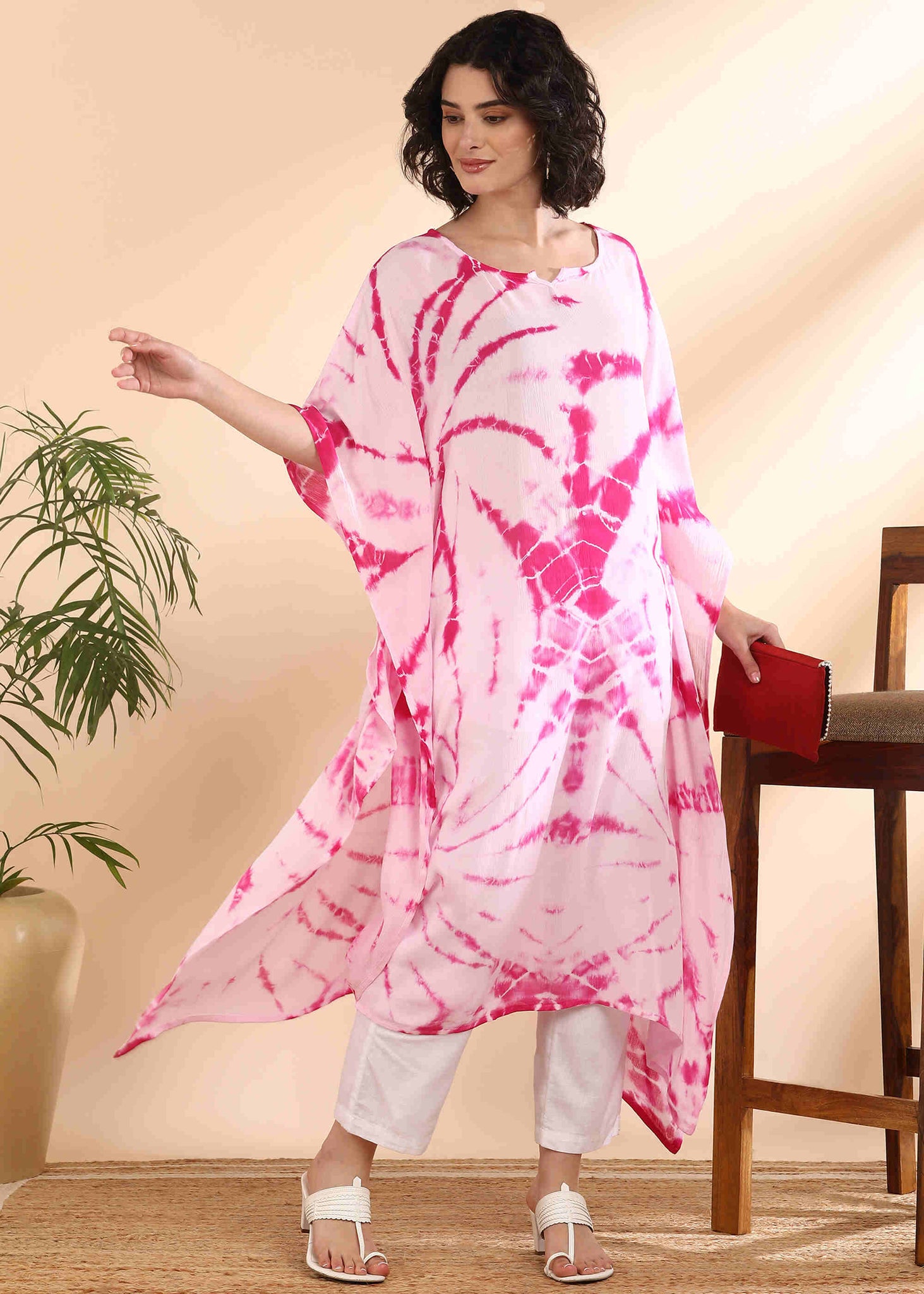 Women Handmade Tie-Dye Rayon Crepe Pink White Kaftan (W1639)