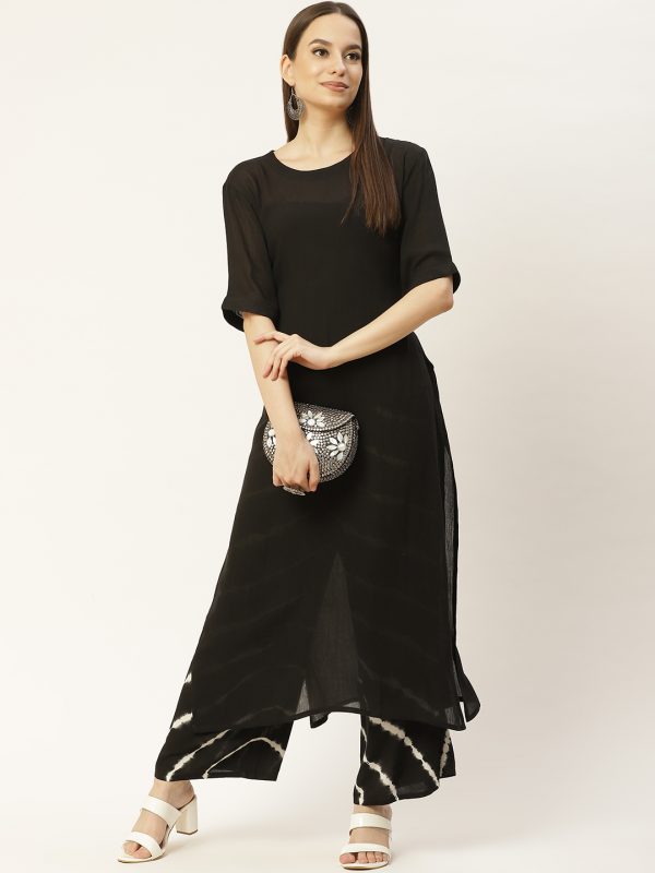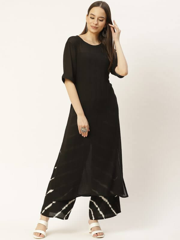 Rayon Tie Dye Black Kurta & Pallazos (W1186)