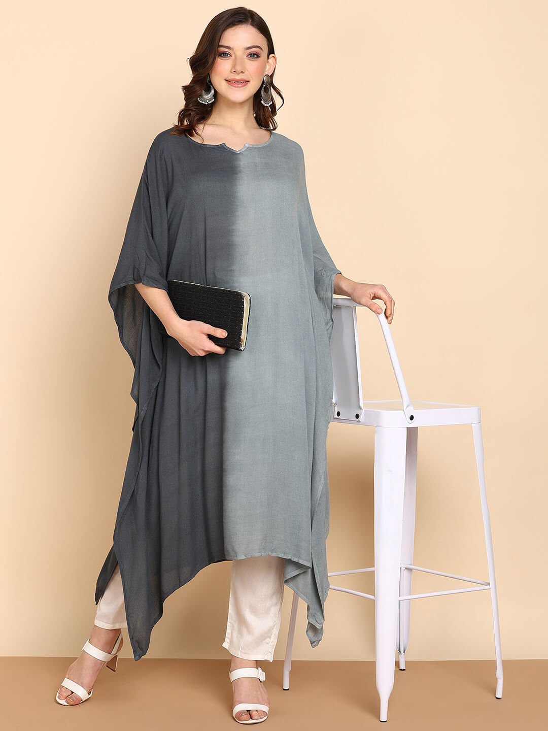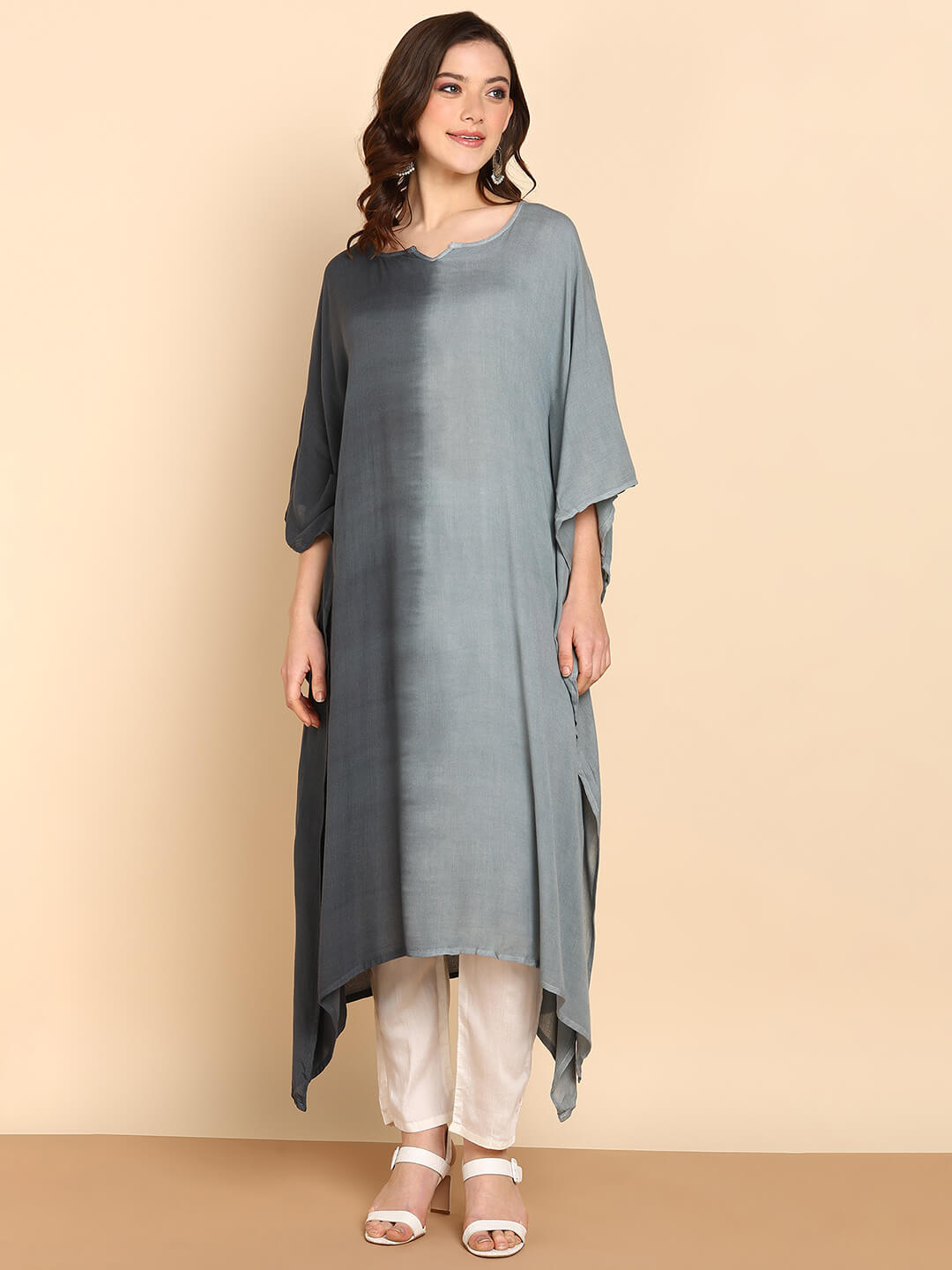 Hand Dyed Loose Fitted Crepe Kaftan Kurta (W1442)