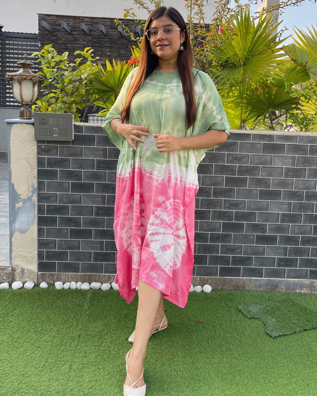 Immerse yourself in the art of tie-and-dye, a technique where fabric is intricately folded, pleated, tied, or stitched to achieve diverse designs. In India, this craft manifests as leheriya, shibori, and bandhani, each telling a unique story. Elevate your style effortlessly with our hand-dyed kaftan kurtas, seamlessly blending handcrafting allure with a relaxed fit. Perfect for any occasion, embrace the simplicity of luxurious fashion and the timeless elegance of meticulous craftsmanship.