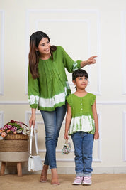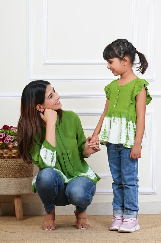 Hand Tie Dyed Mother Daughter Top Combo Green (COMBOMD9002)