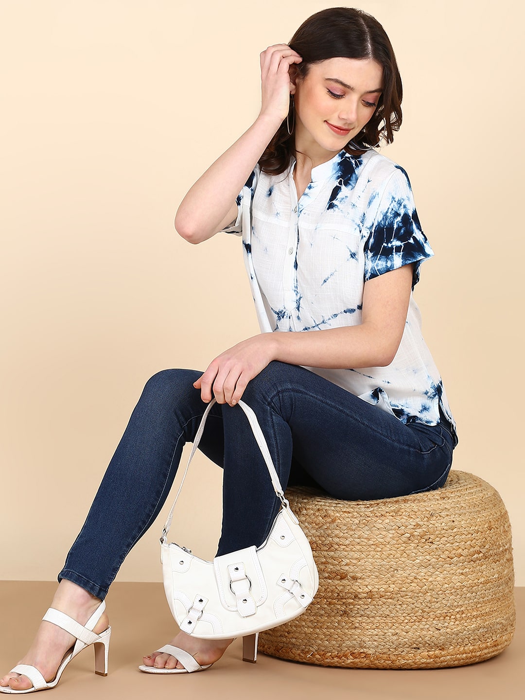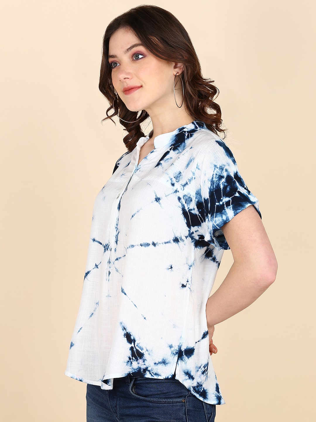 Immerse yourself in the art of tie-and-dye, a technique where fabric is intricately folded, pleated, tied, or stitched to achieve diverse designs. In India, this craft manifests as leheriya, shibori, and bandhani, each telling a unique story. Elevate your style effortlessly with our hand-dyed mandarin collar rayon tops, seamlessly blending handcrafting allure with a modern fit. Perfect for any occasion, embrace the simplicity of luxurious fashion and the timeless elegance of meticulous craftsmanship.