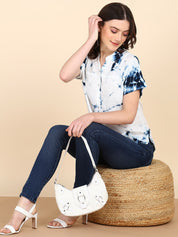 Half Sleeves Tie Dyed Fitted Rayon Top (W1487)