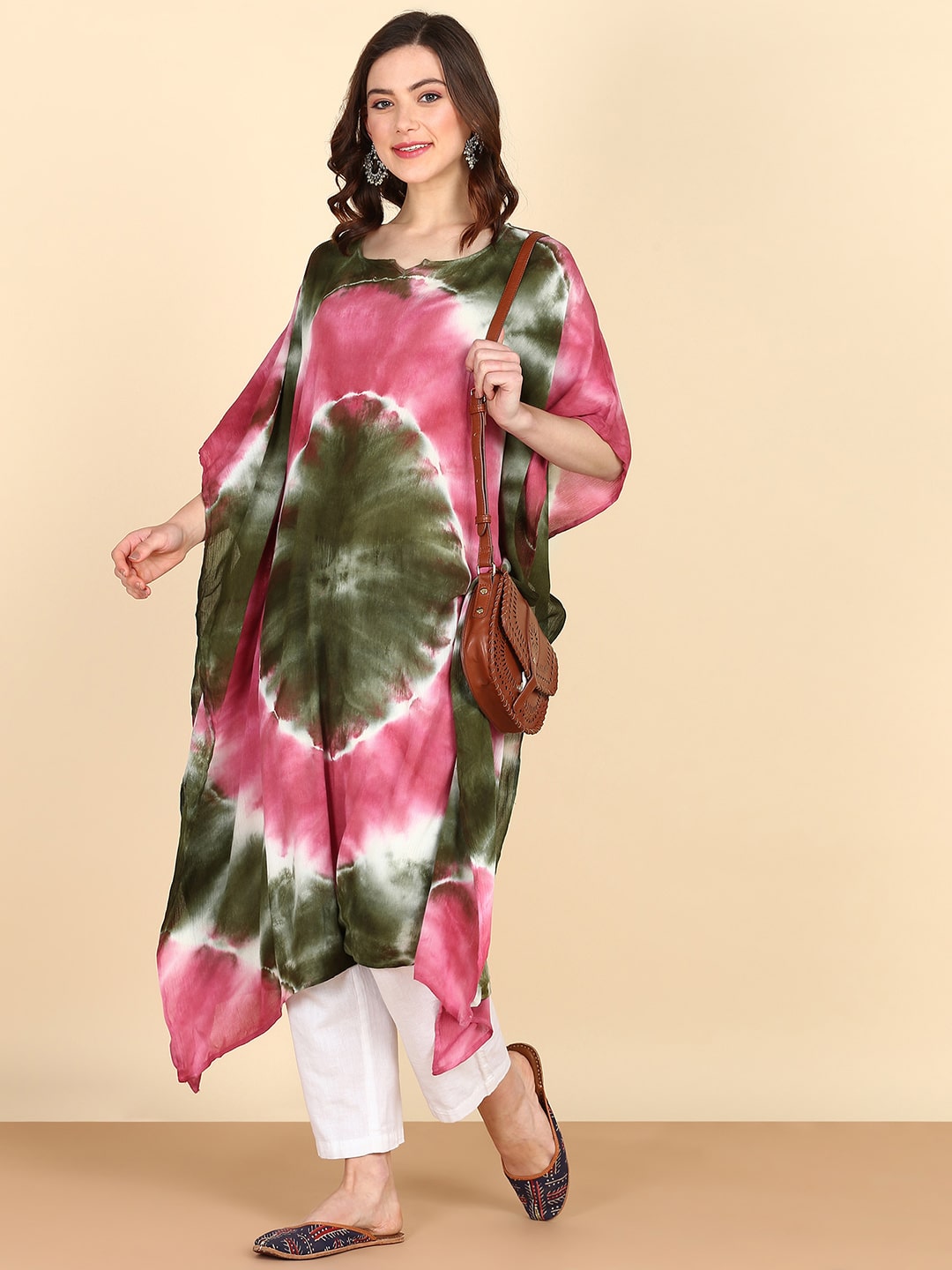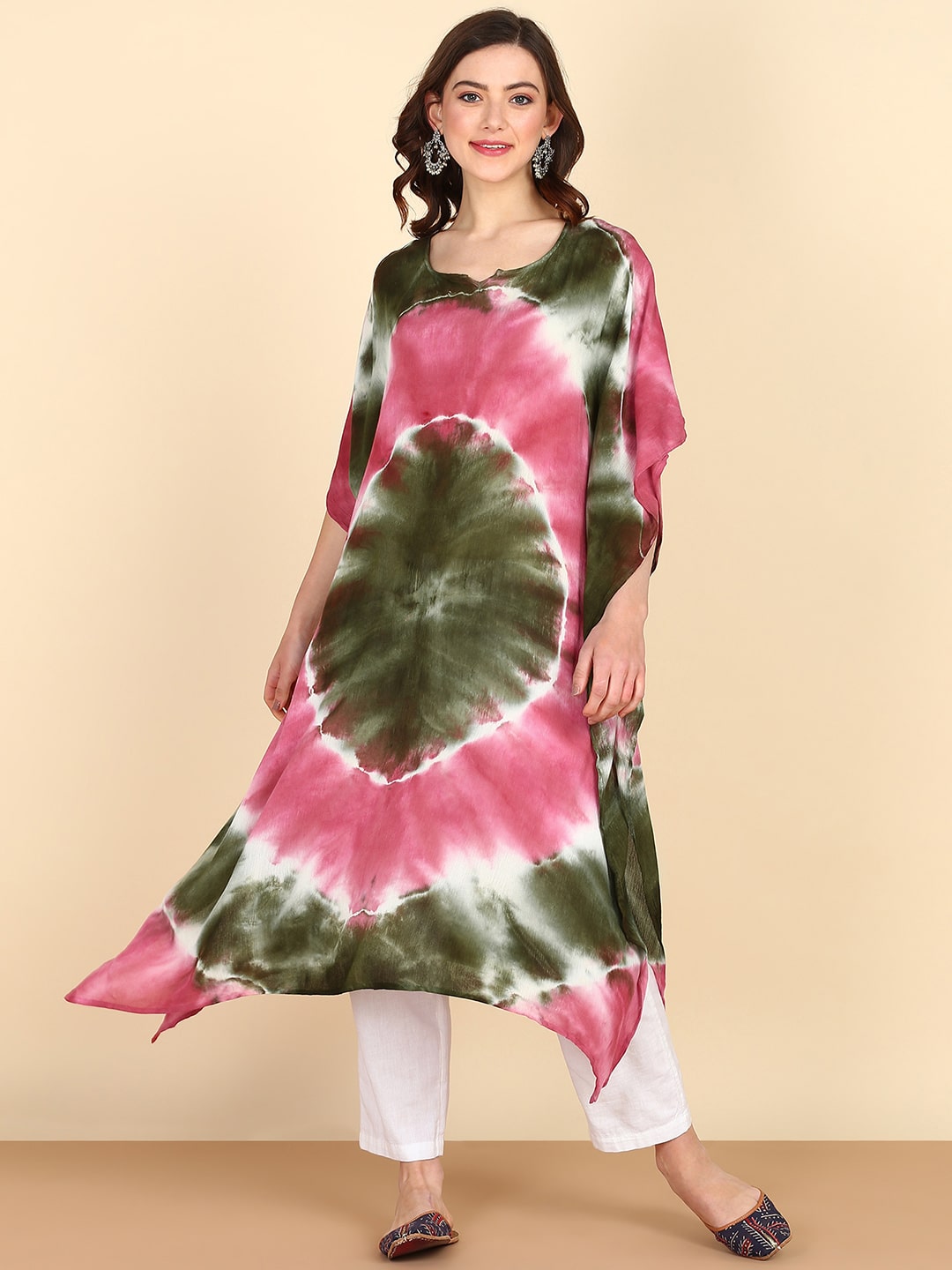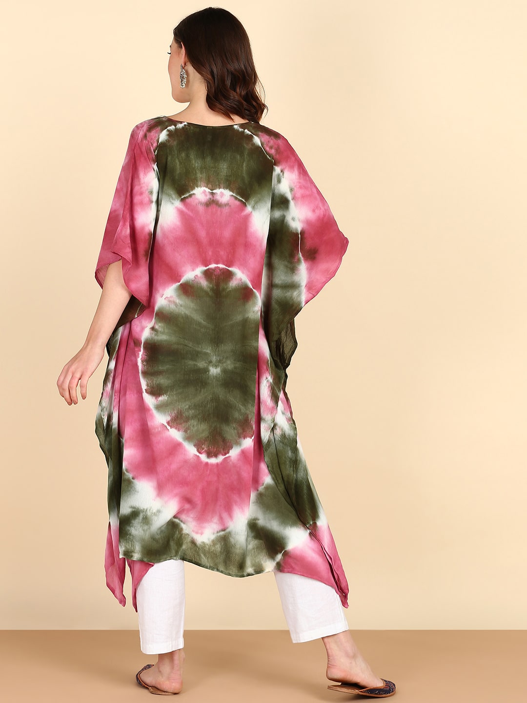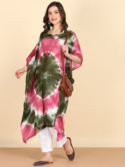 Rayon Tie Dye Pink Green Kaftan kurta (W1356)