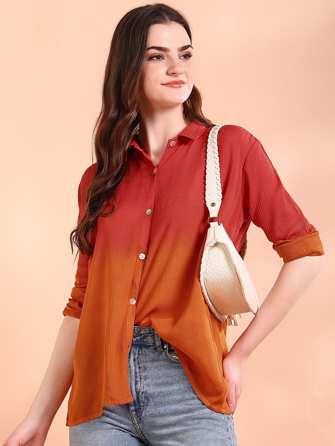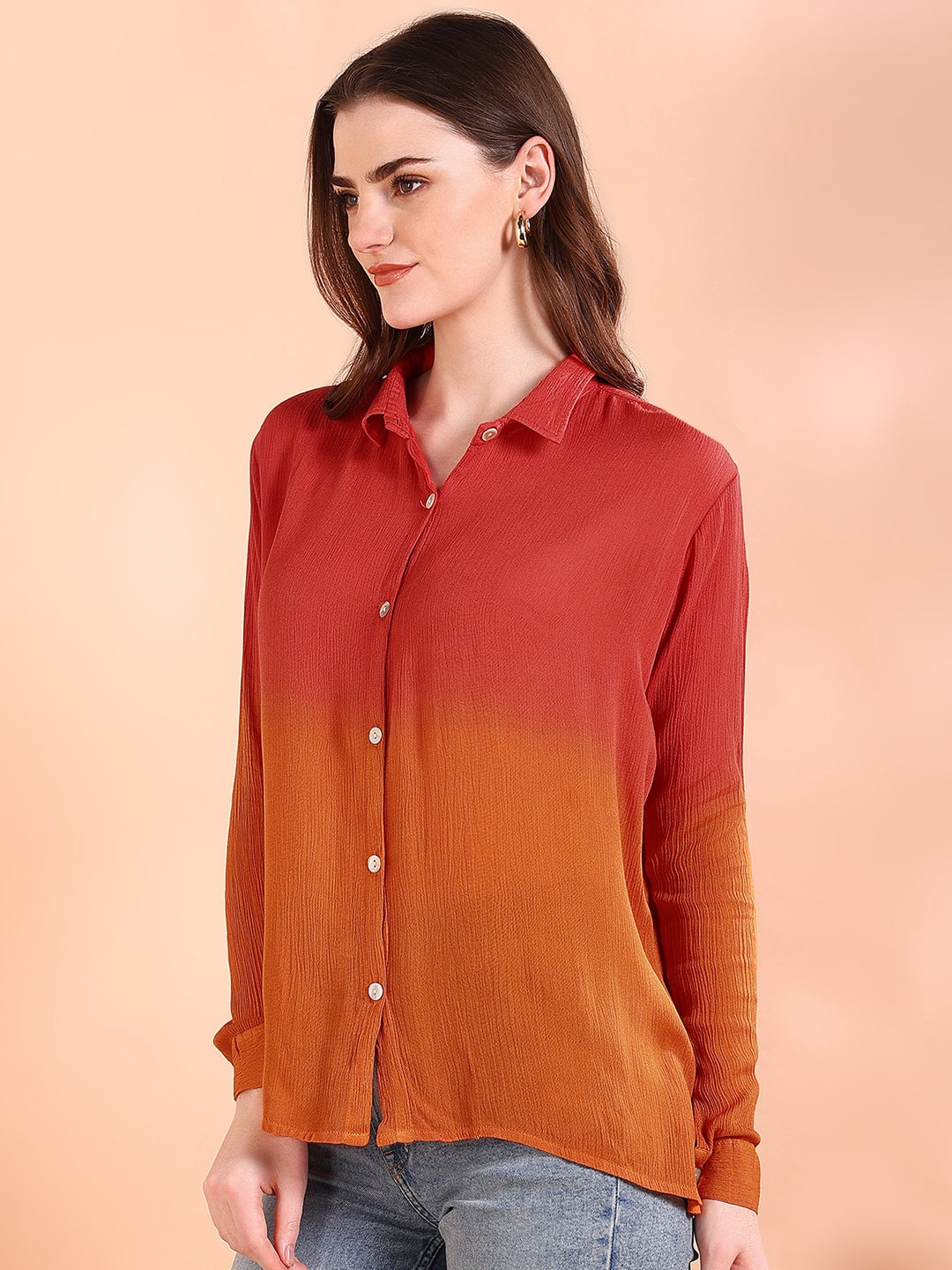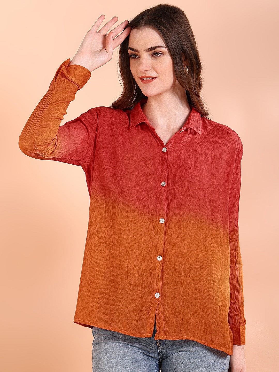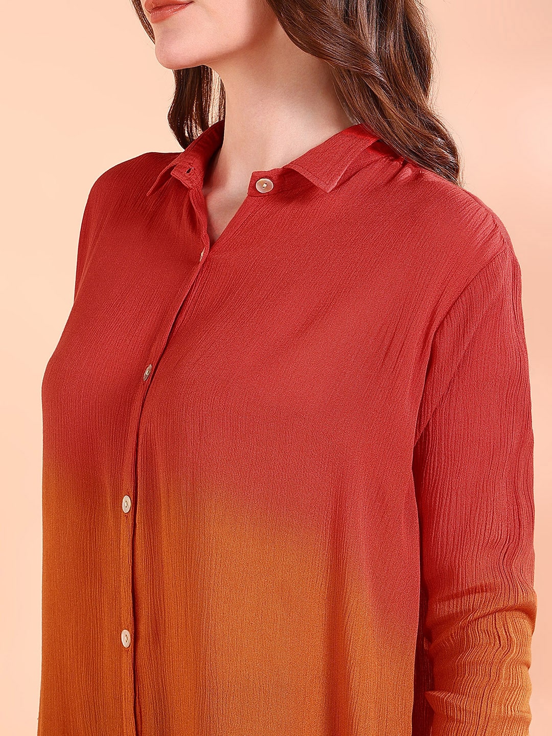 Red Tie-Dye Crepe Loose fit Shirt (W1559)
