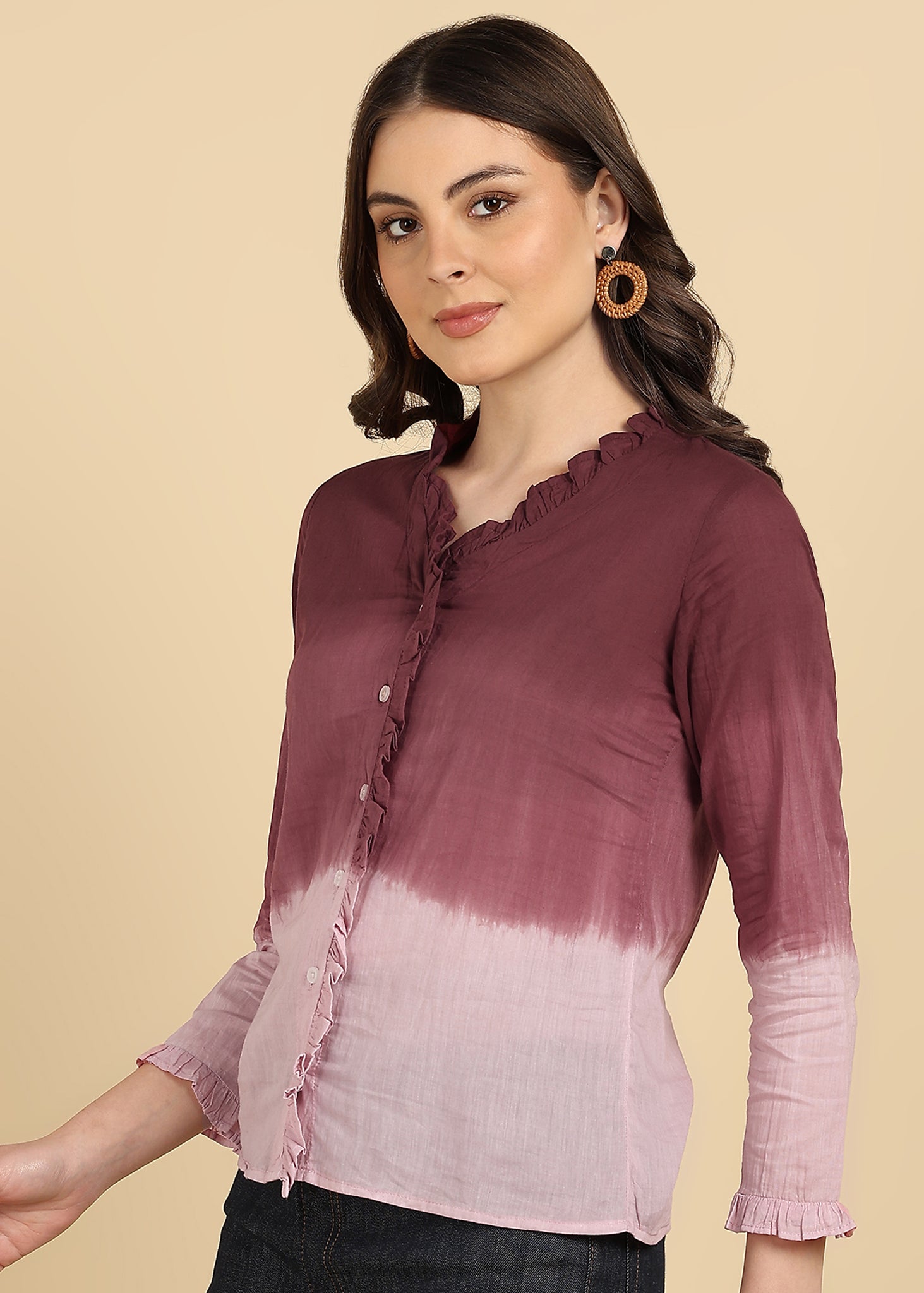 Women Cotton Tie & Dye Full Sleeve Casual Regular Fit Shirt (W1729)