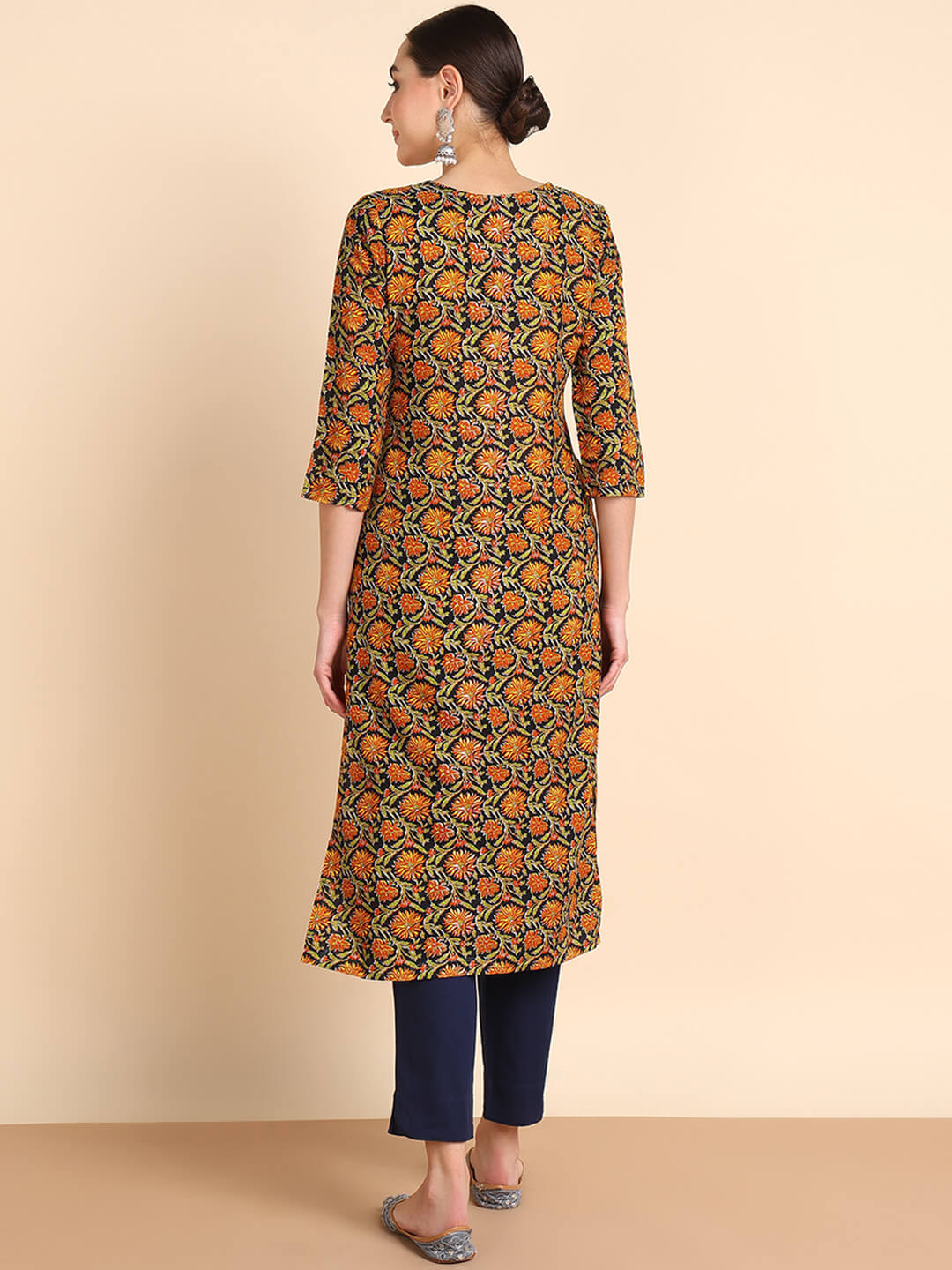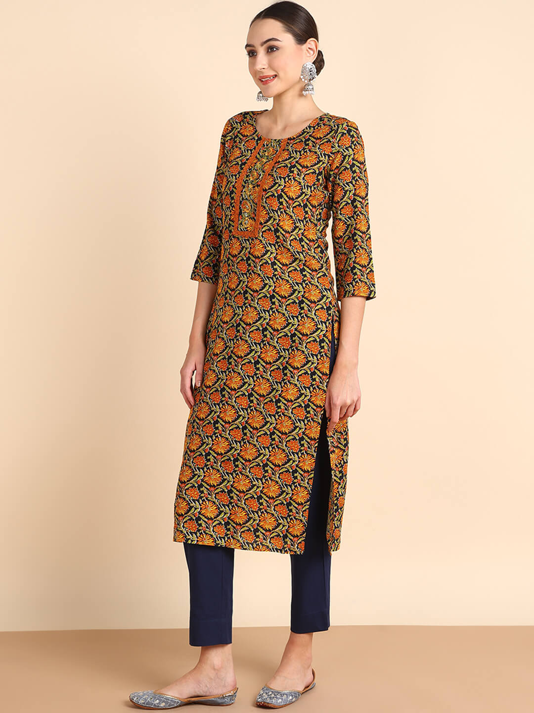 Women Embroidered Printed Rayon Straight Kurta (W1505)