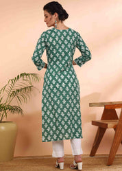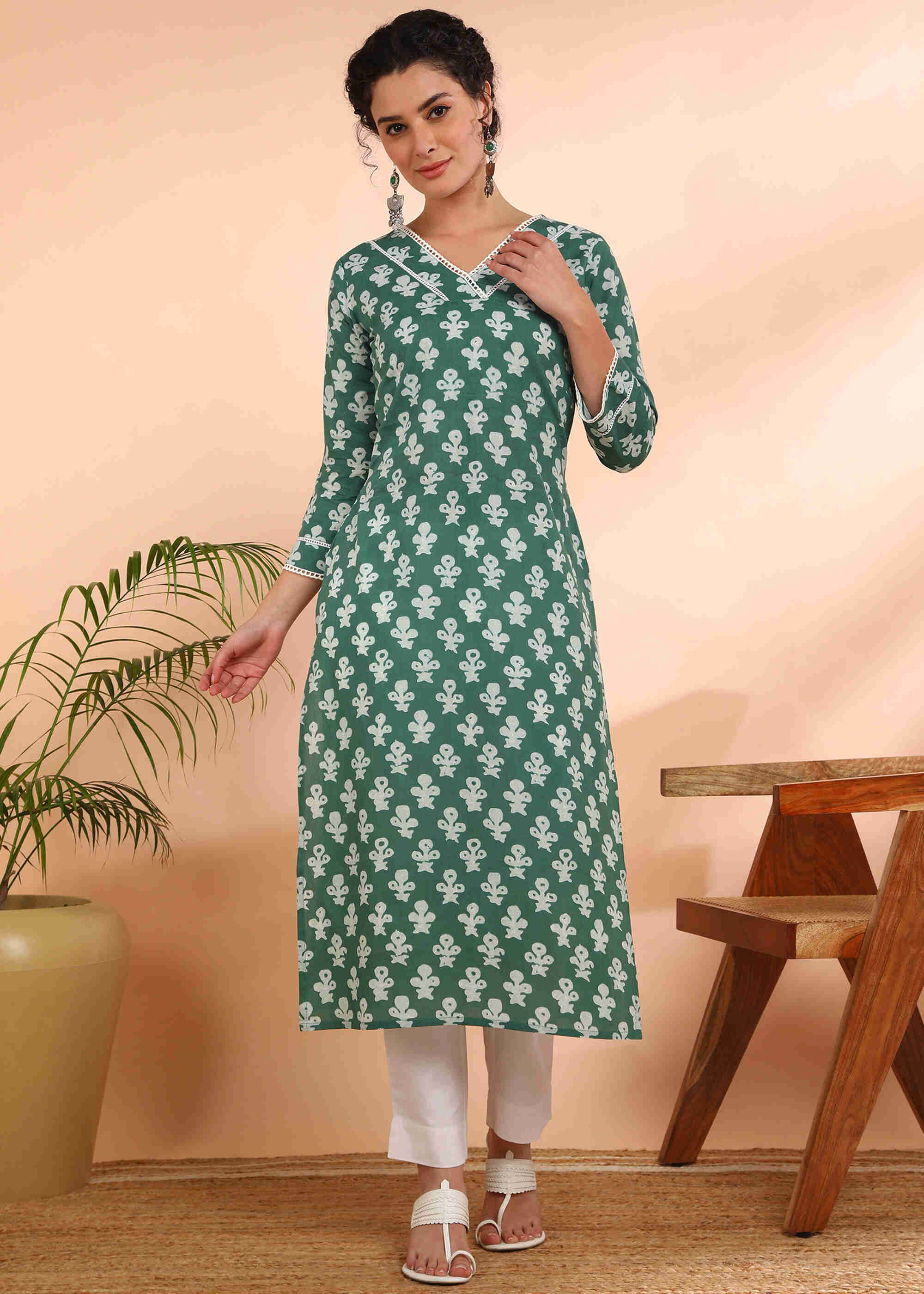 Elevate your everyday ethnic style with the Women Handmade Floral Pure Cotton Straight Green Kurta. Crafted from 100% pure cotton, this kurta is soft, breathable, and perfect for all-day comfort. The elegant floral print adds a touch of sophistication, making it ideal for work, casual outings, or festive occasions.