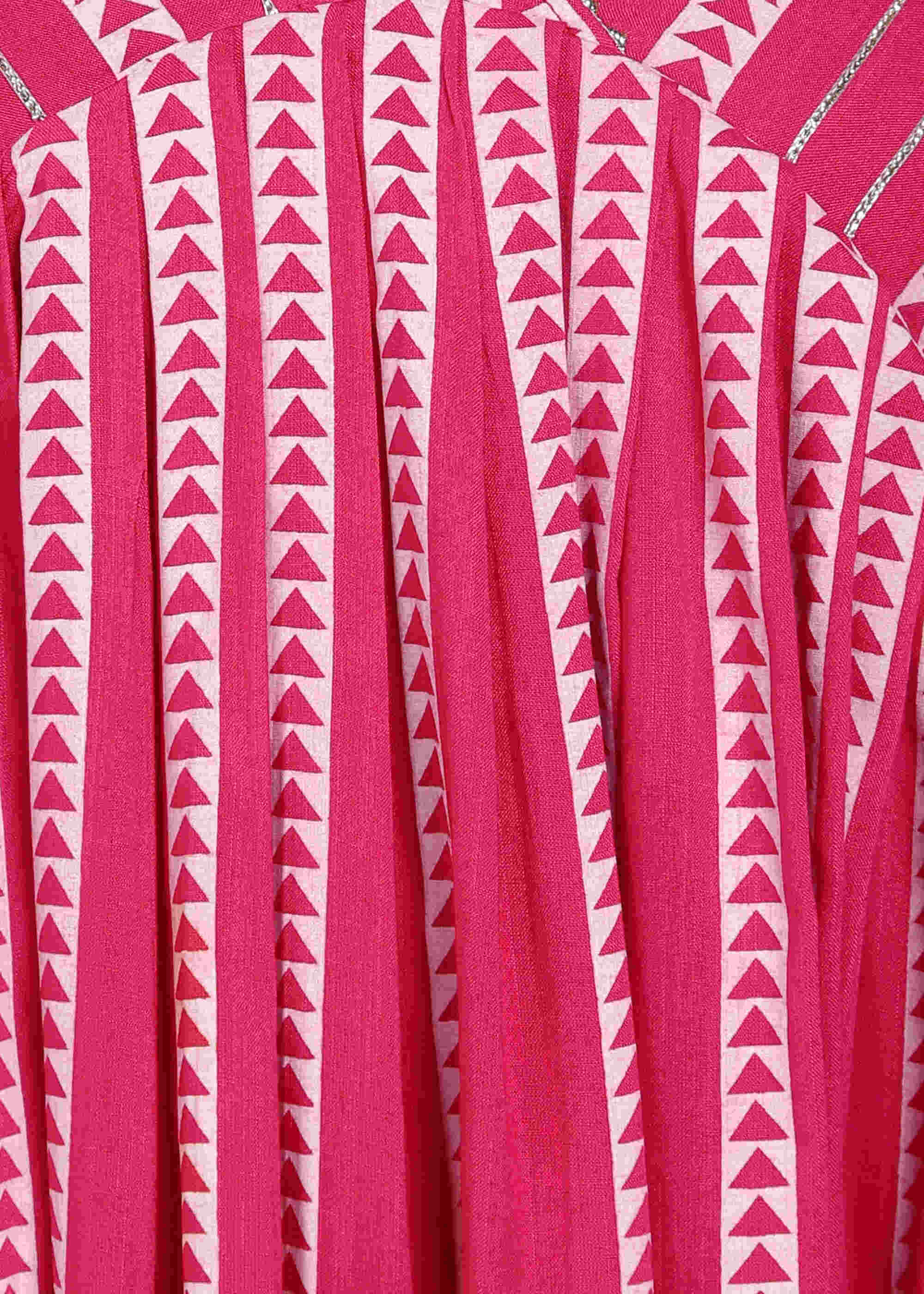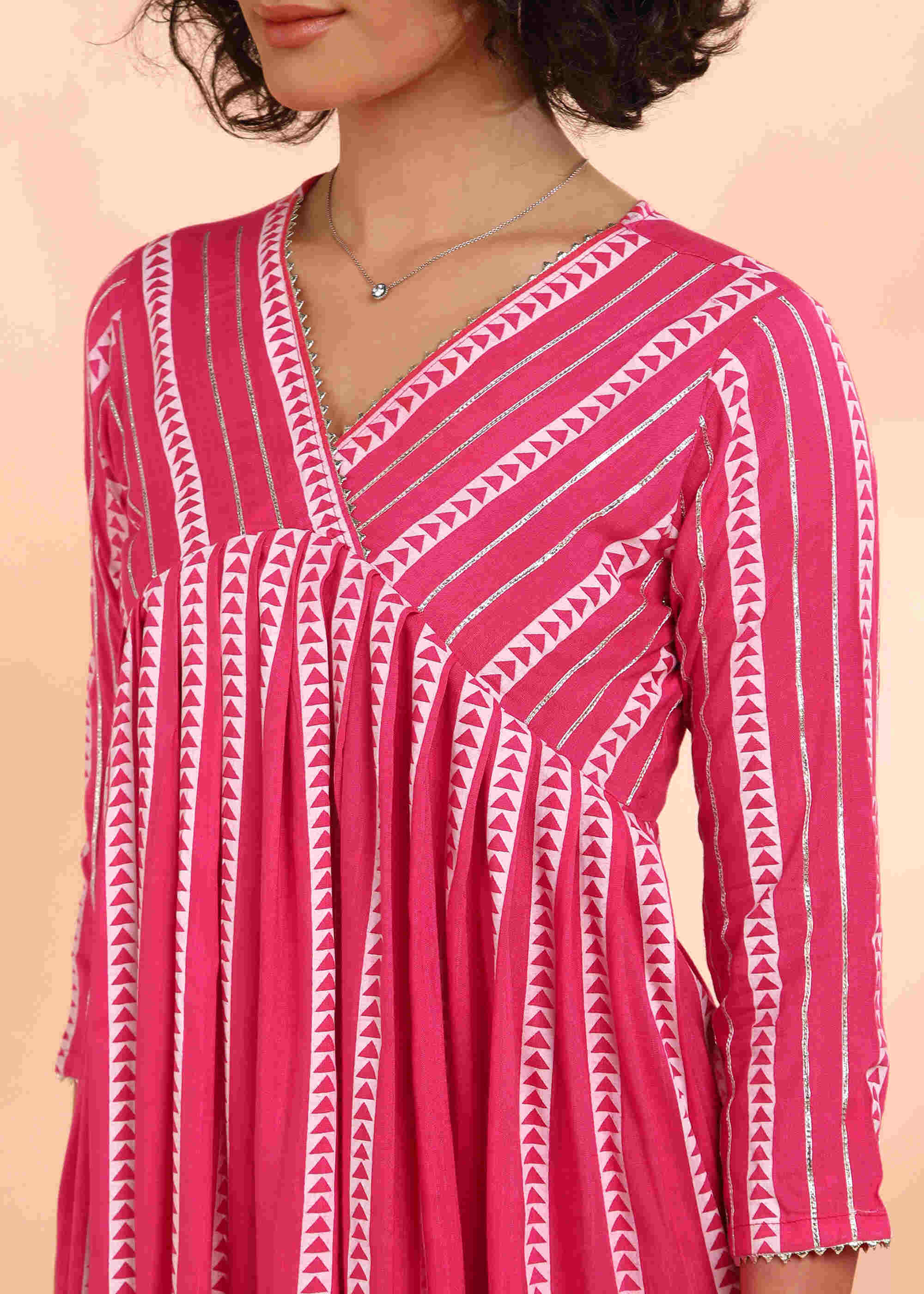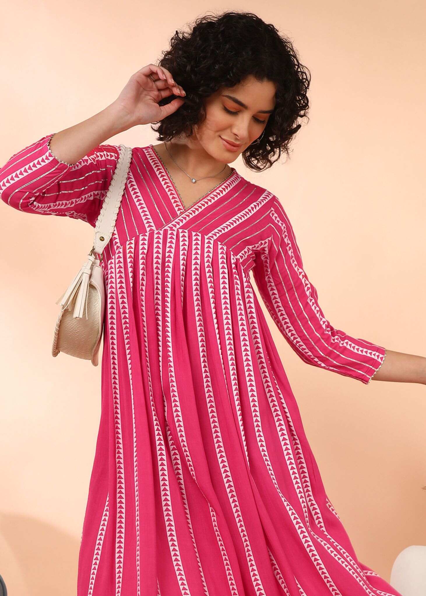 Women Handmade Striped Viscose Rayon Flared Pink Dress (W1587)