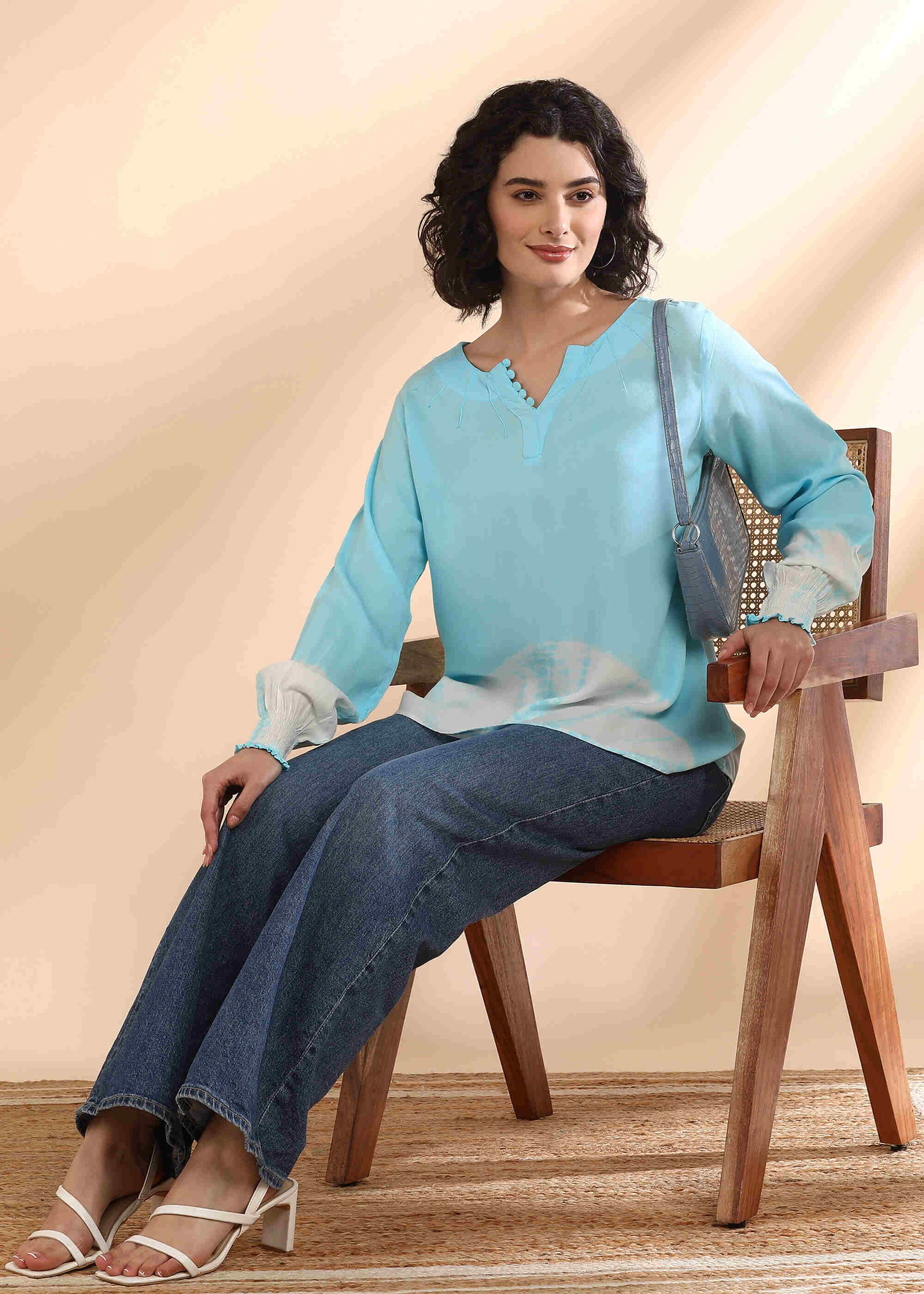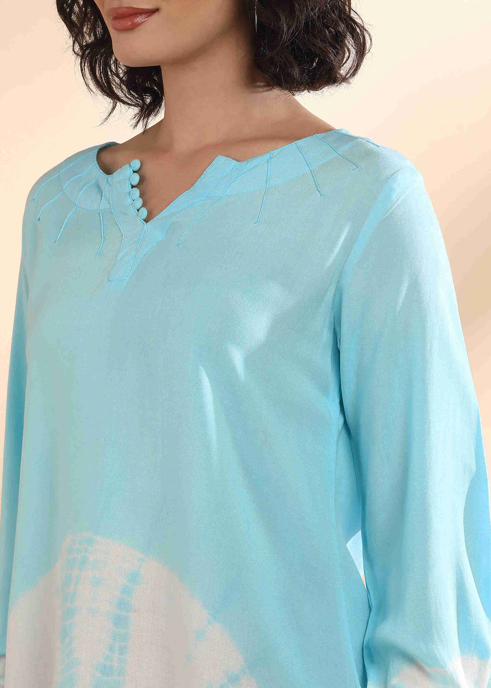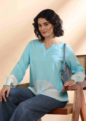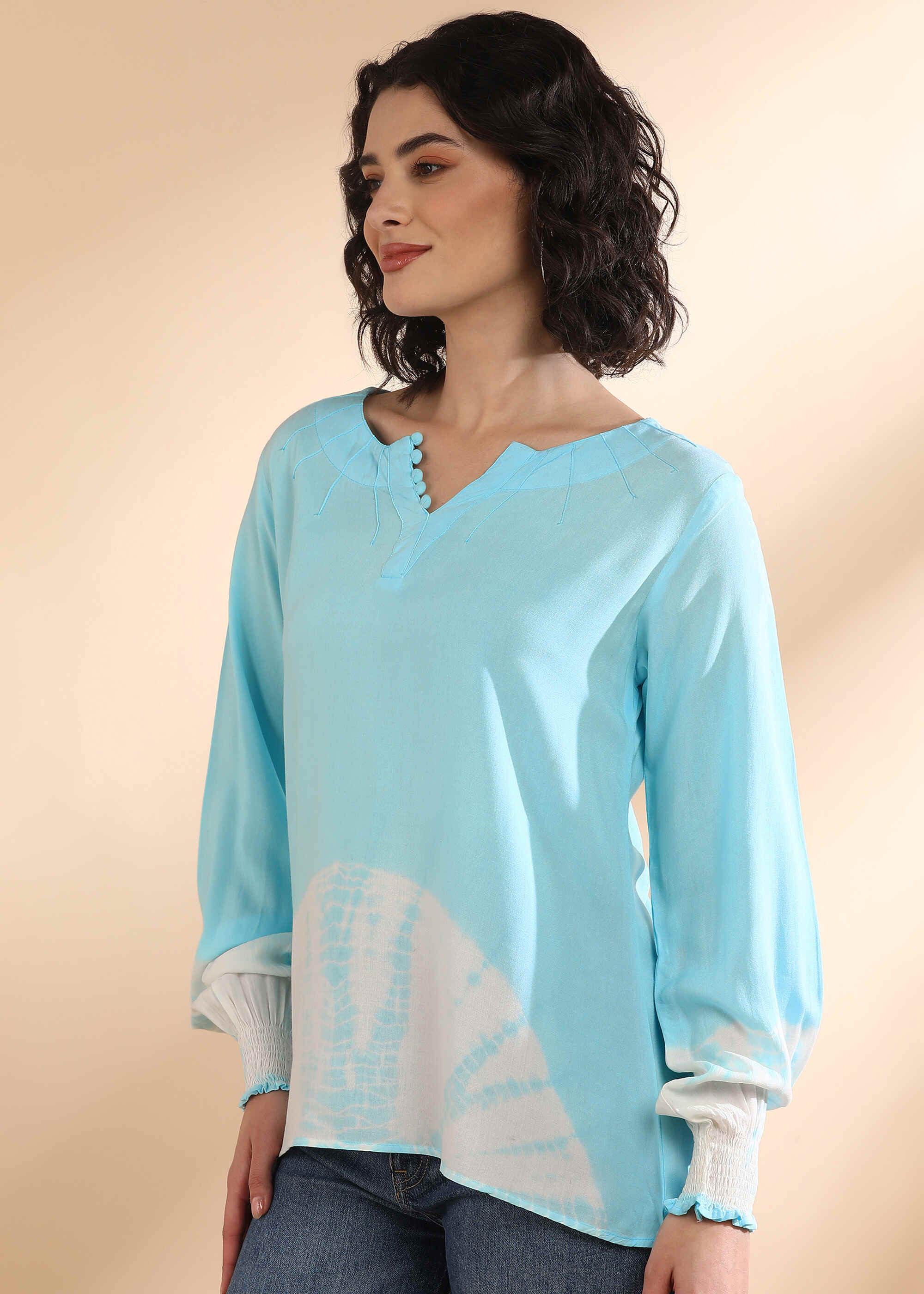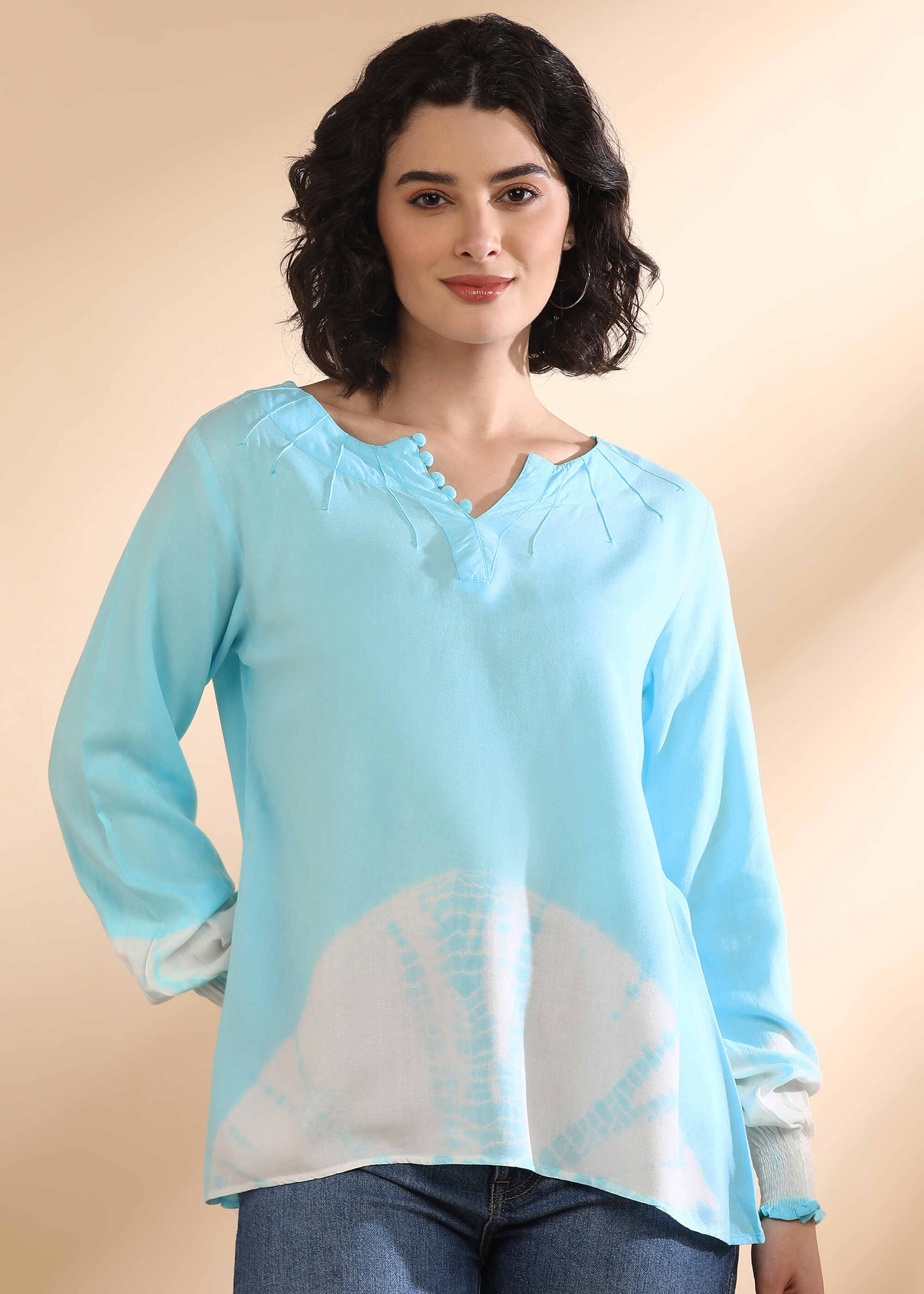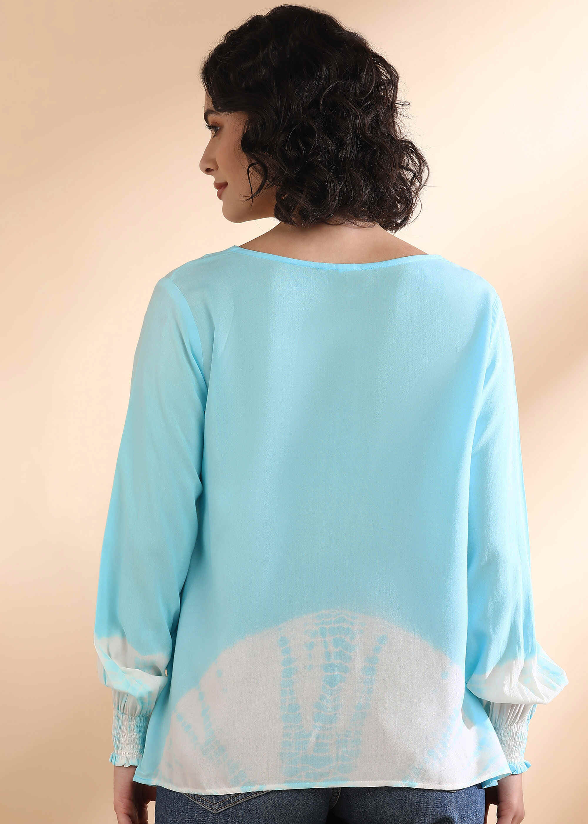 Women Handmade Tie-Dye Rayon Blue Top (W1665)