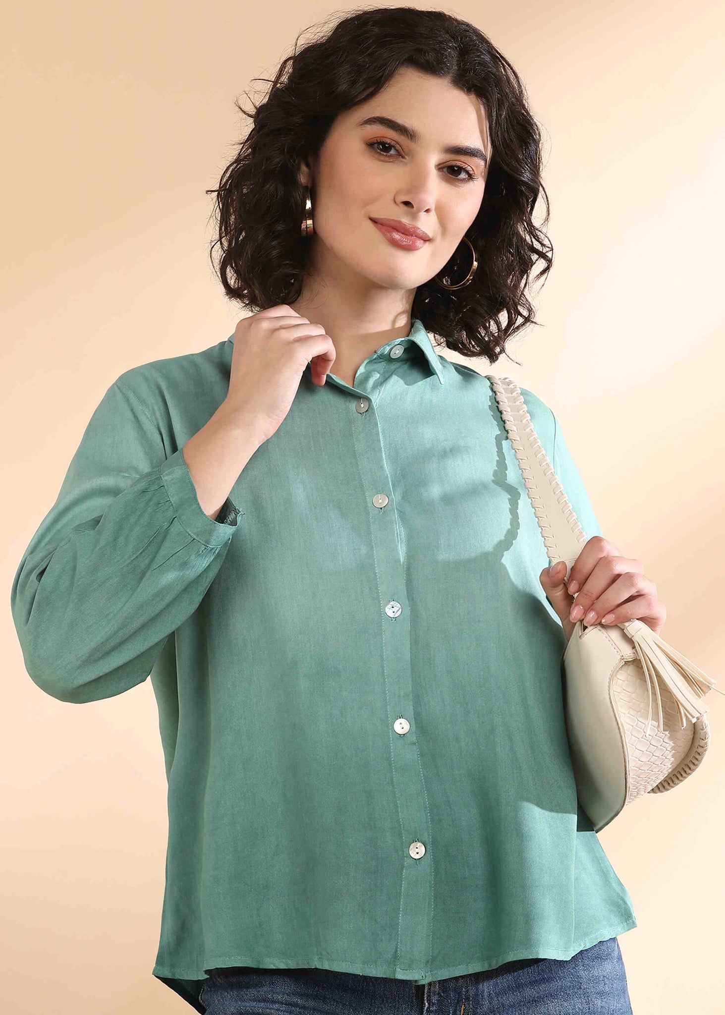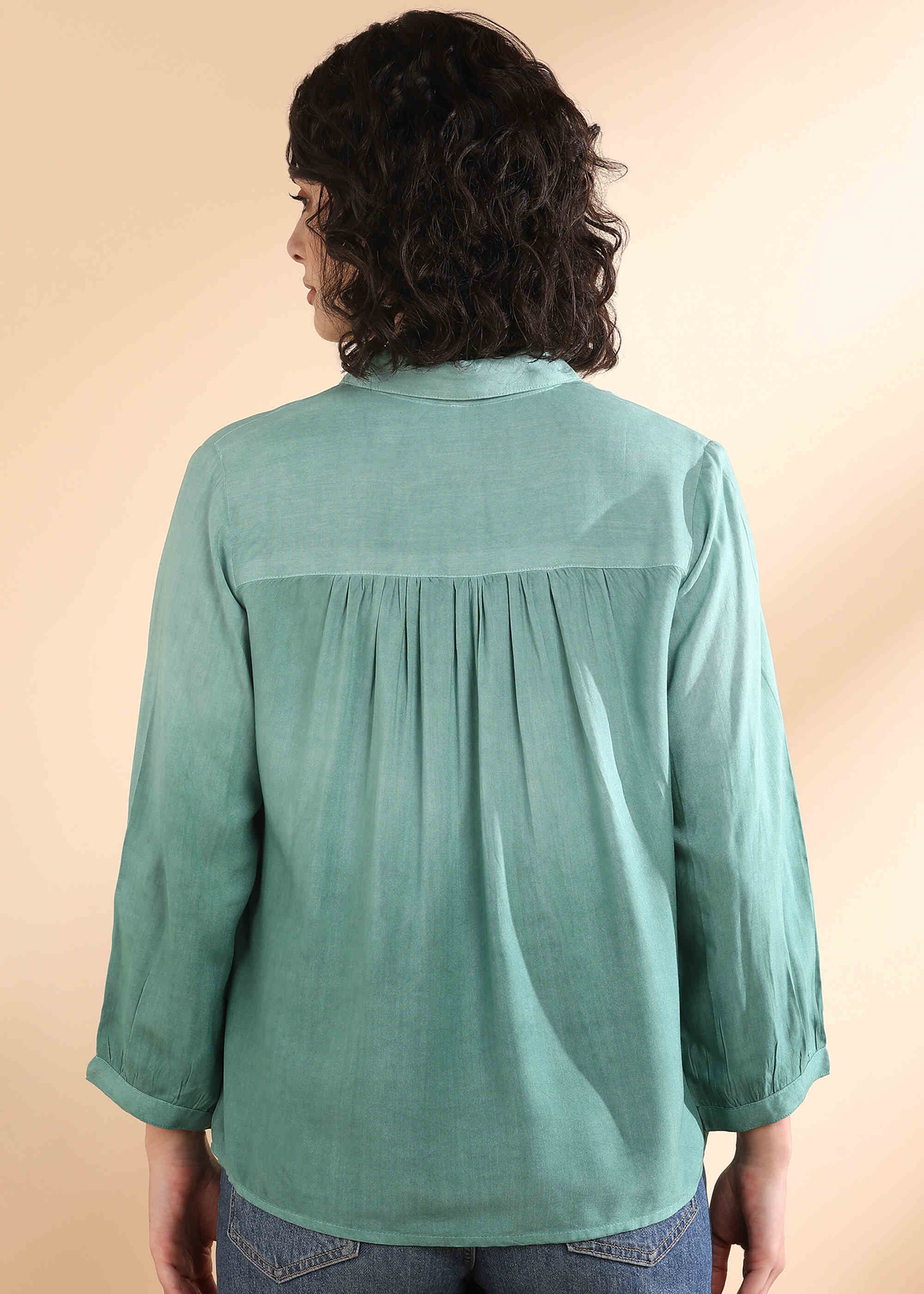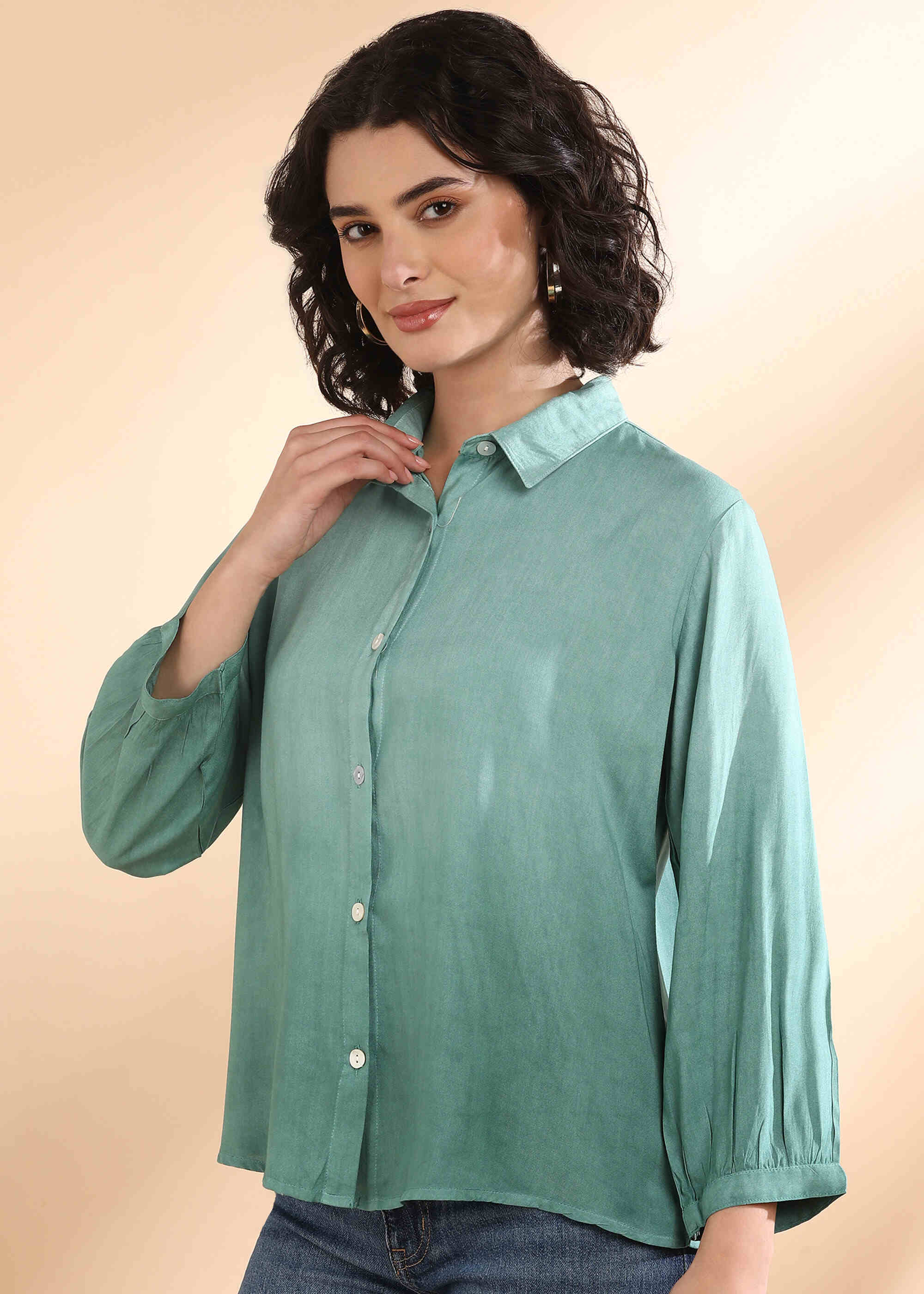 Women Handmade Tie-Dye Rayon Green Shirt (W1628)