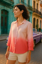 Women Handmade Tie-Dye Casual Rayon Pink Shirt (W1624)