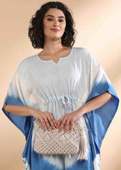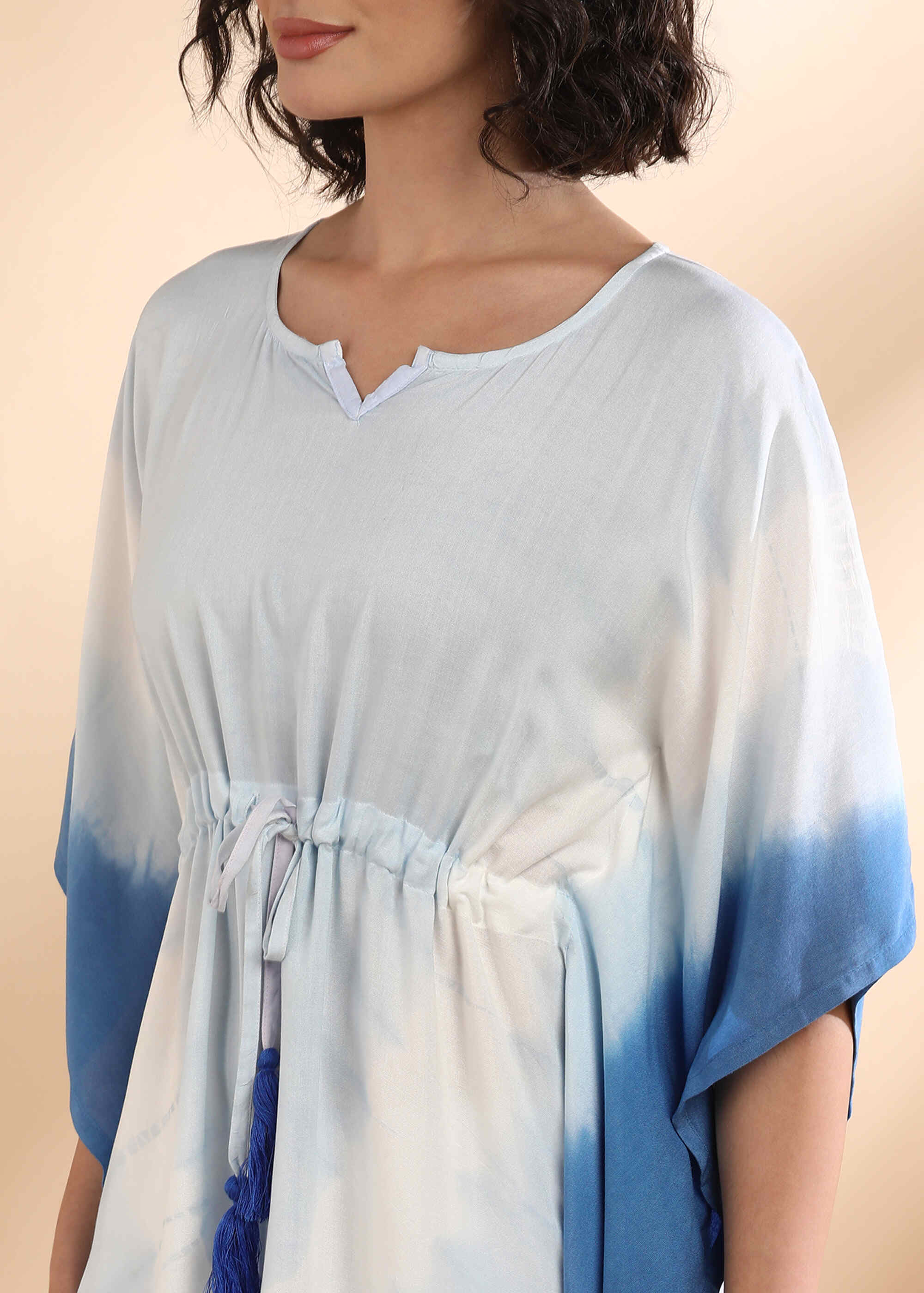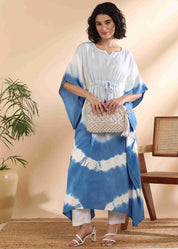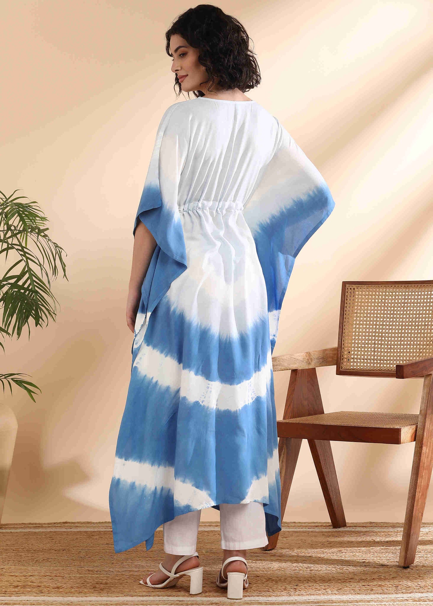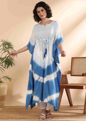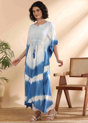 Women Handmade Tie-Dye Rayon White Blue Kaftan (W1650)