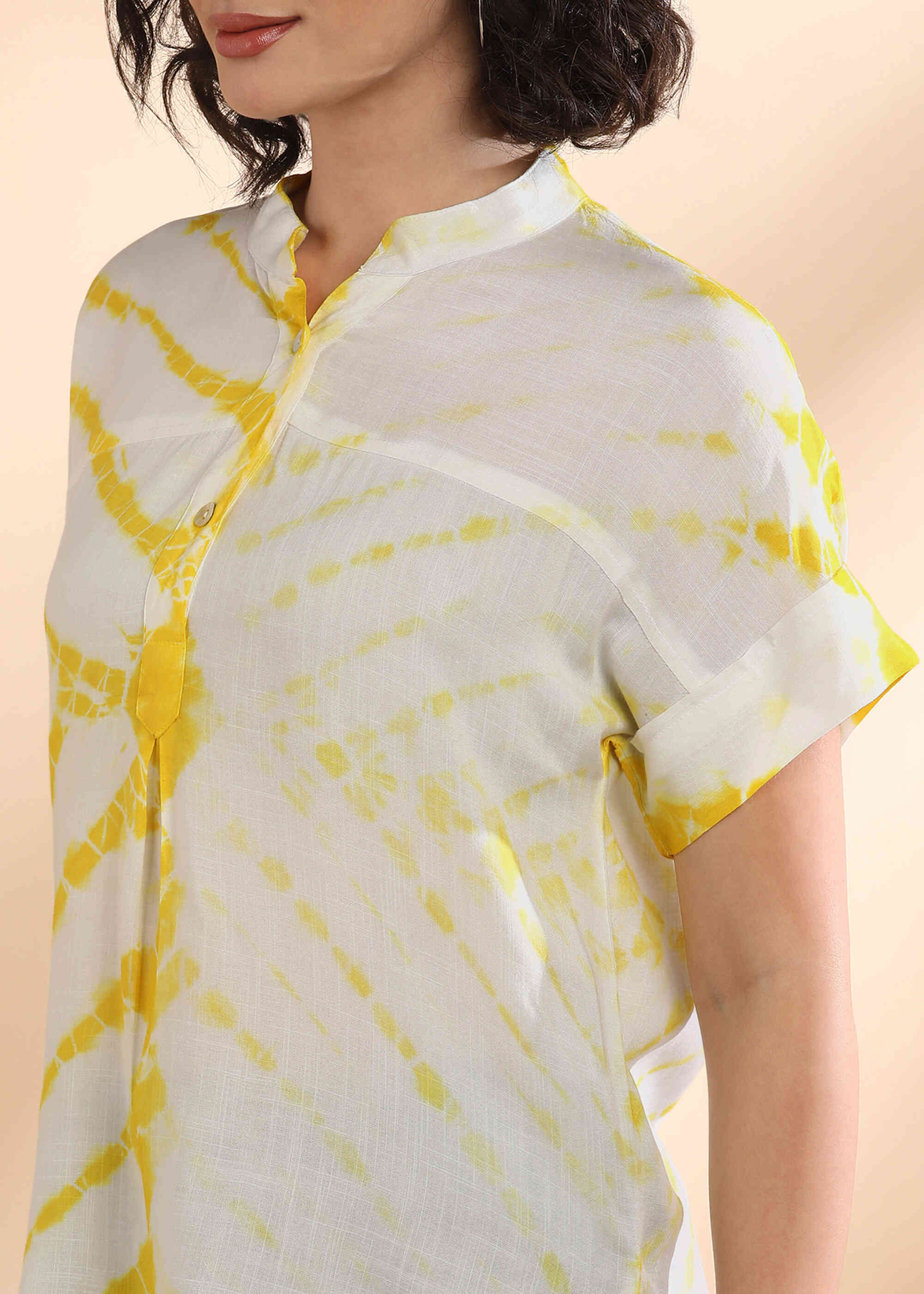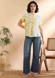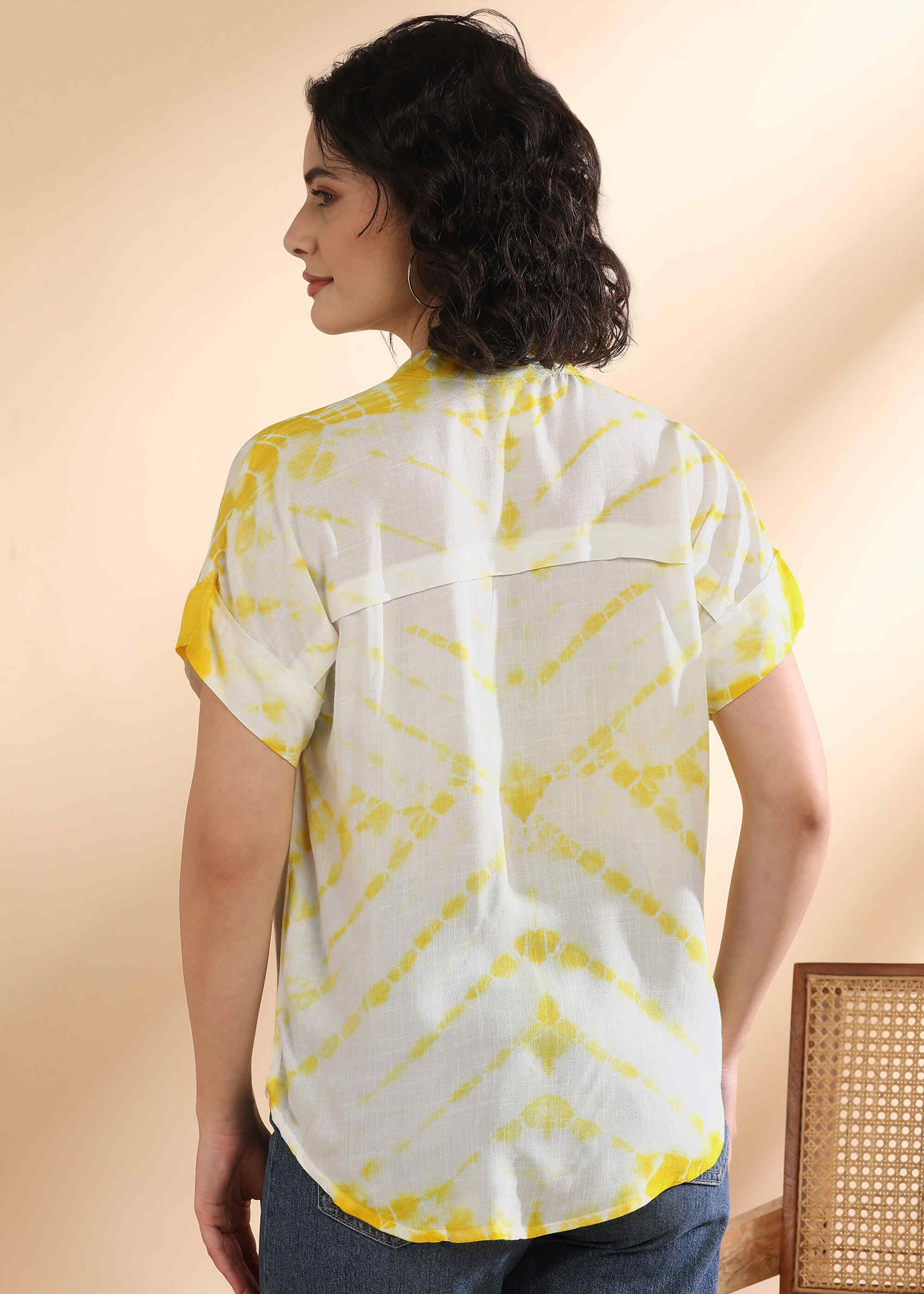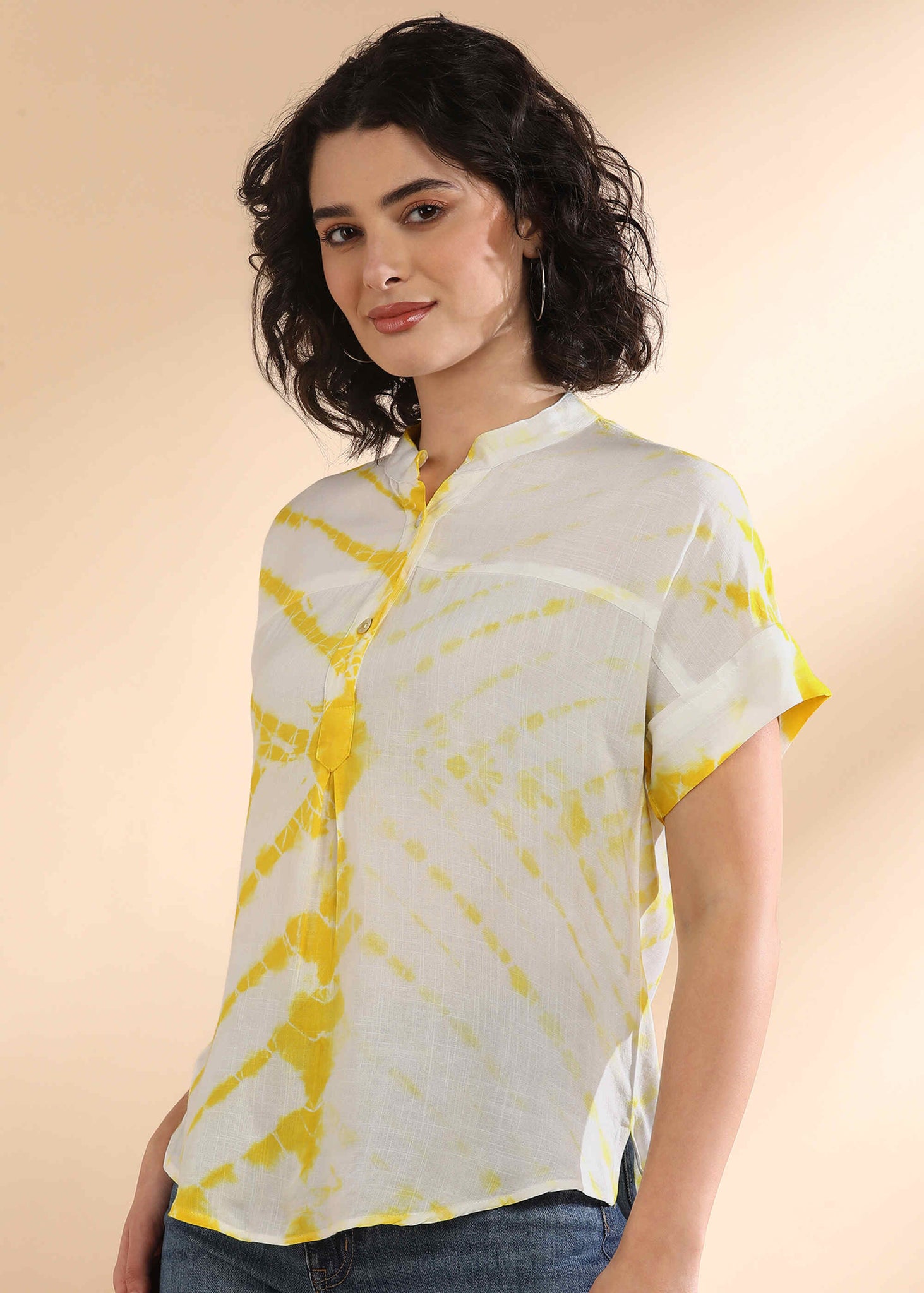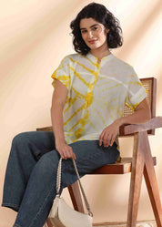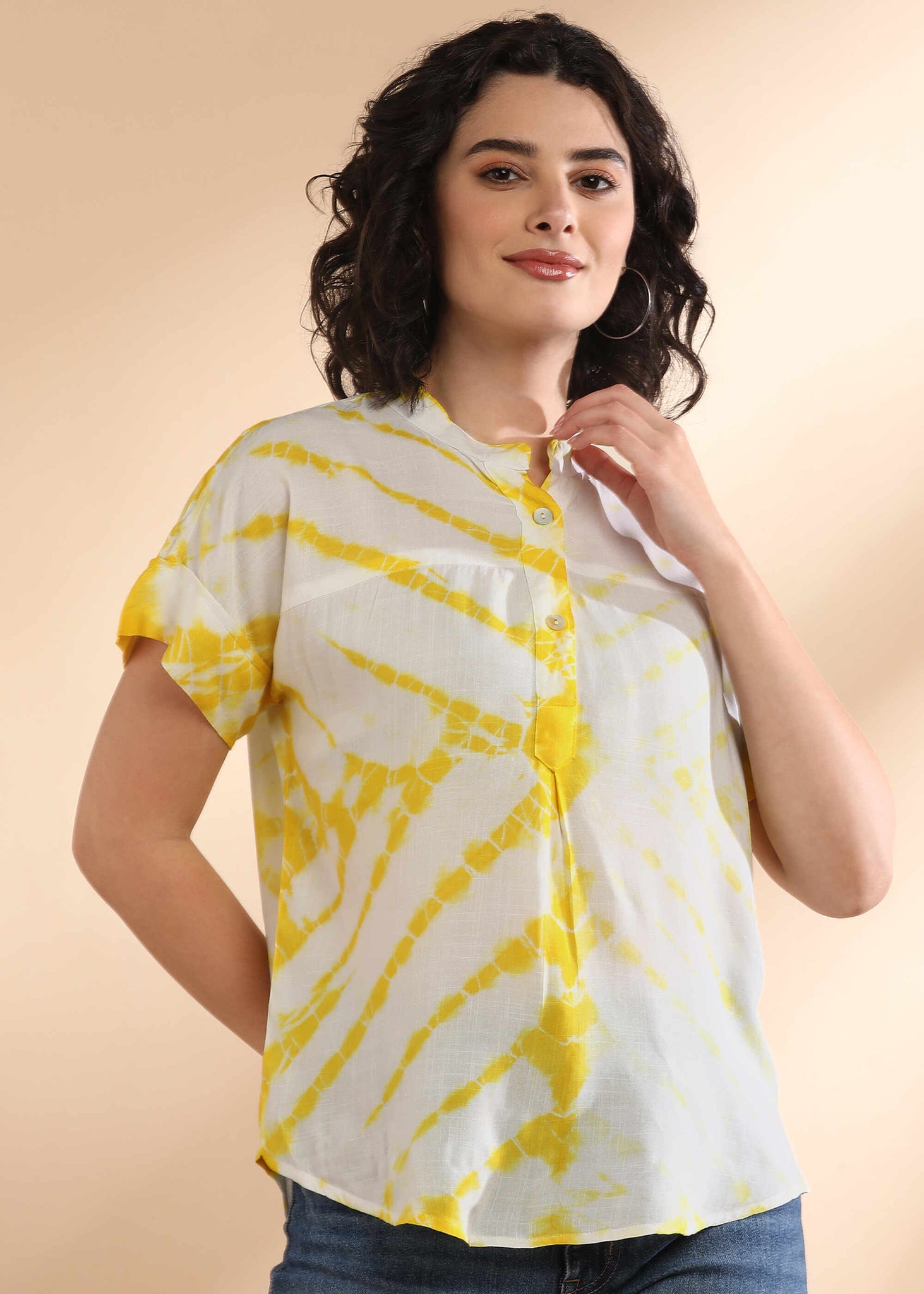 Women Handmade Tie-Dye Rayon Yellow Top (W1636)