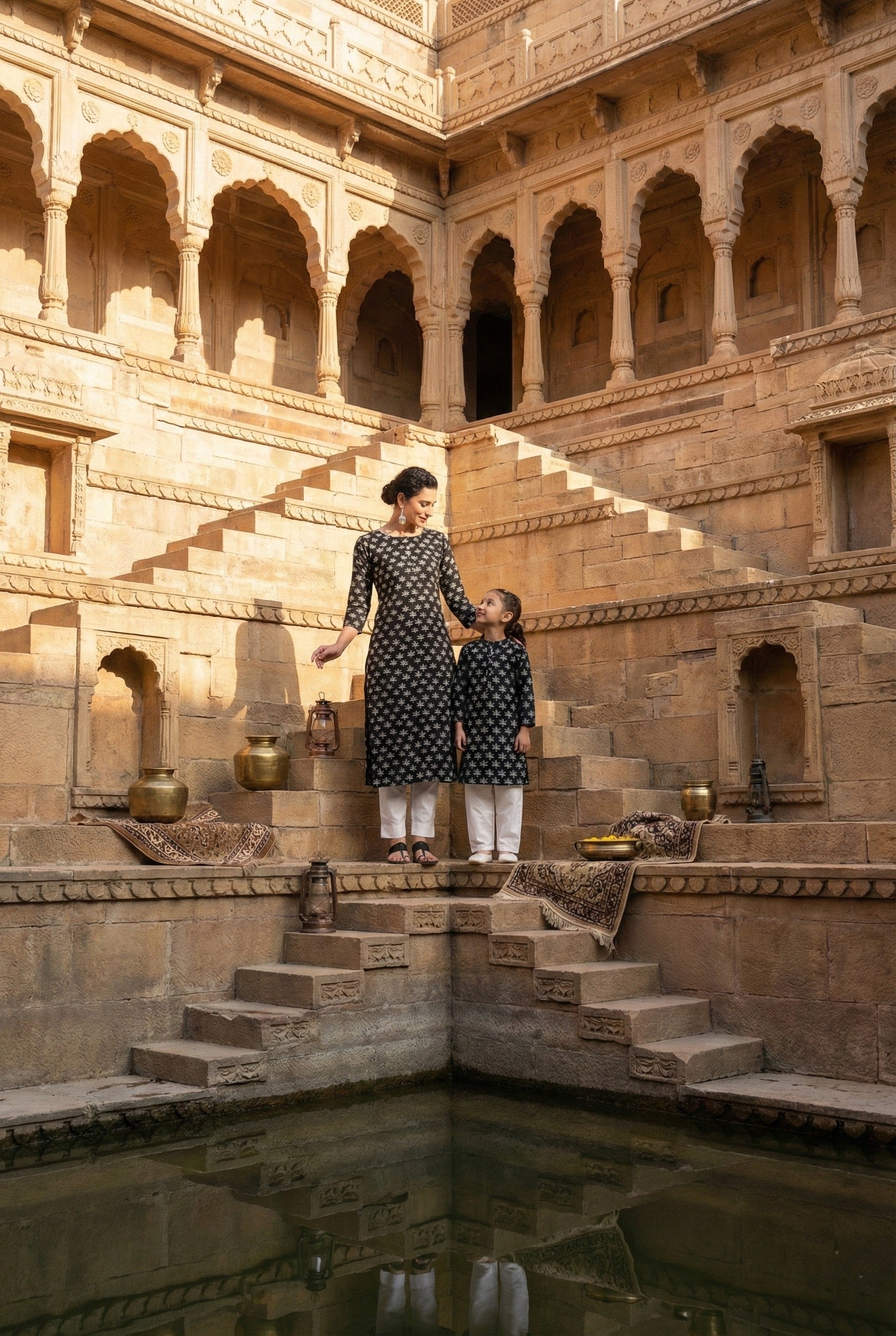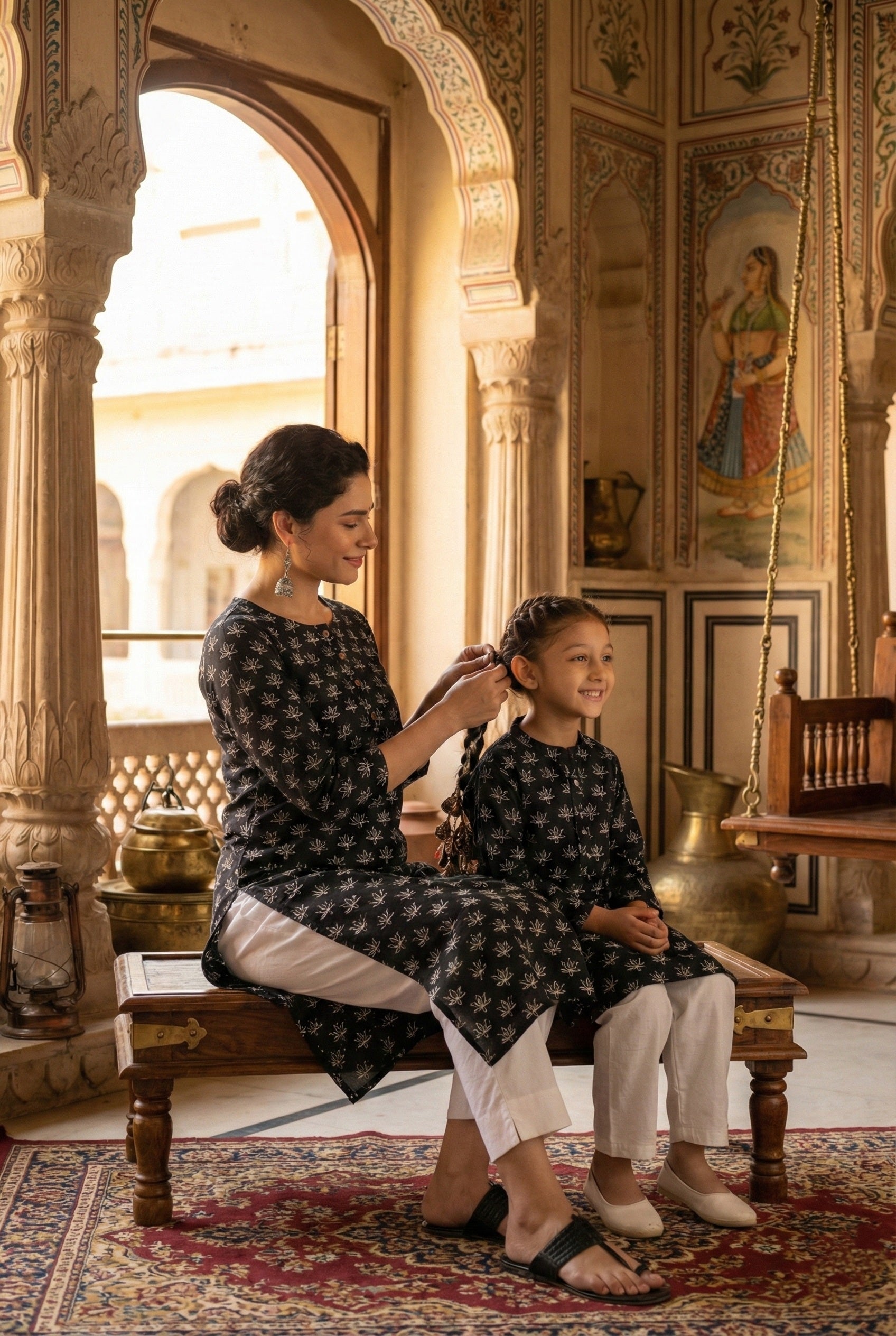 Elevate your twinning game with our exquisite mother-daughter combo, crafted from high-quality fabric that feels soft against the skin. Designed for comfort and style, this outfit is perfect for every special occasion, whether it’s a family gathering, festive celebration, or a fun day out. The breathable material ensures all-day comfort, making it ideal for both casual and semi-formal wear. The unique pattern adds a vibrant and trendy touch, setting you apart with its artistic and chic appeal. With a relaxed yet flattering fit, this matching set enhances your natural grace while maintaining ease of movement. Pair it with stylish footwear and minimal accessories to complete the effortlessly elegant look. Celebrate the unbreakable bond between mother and daughter with this timeless fashion statement. A must-have for your wardrobe,